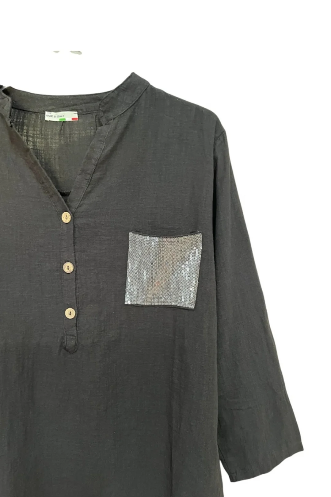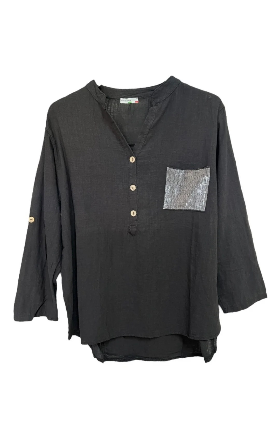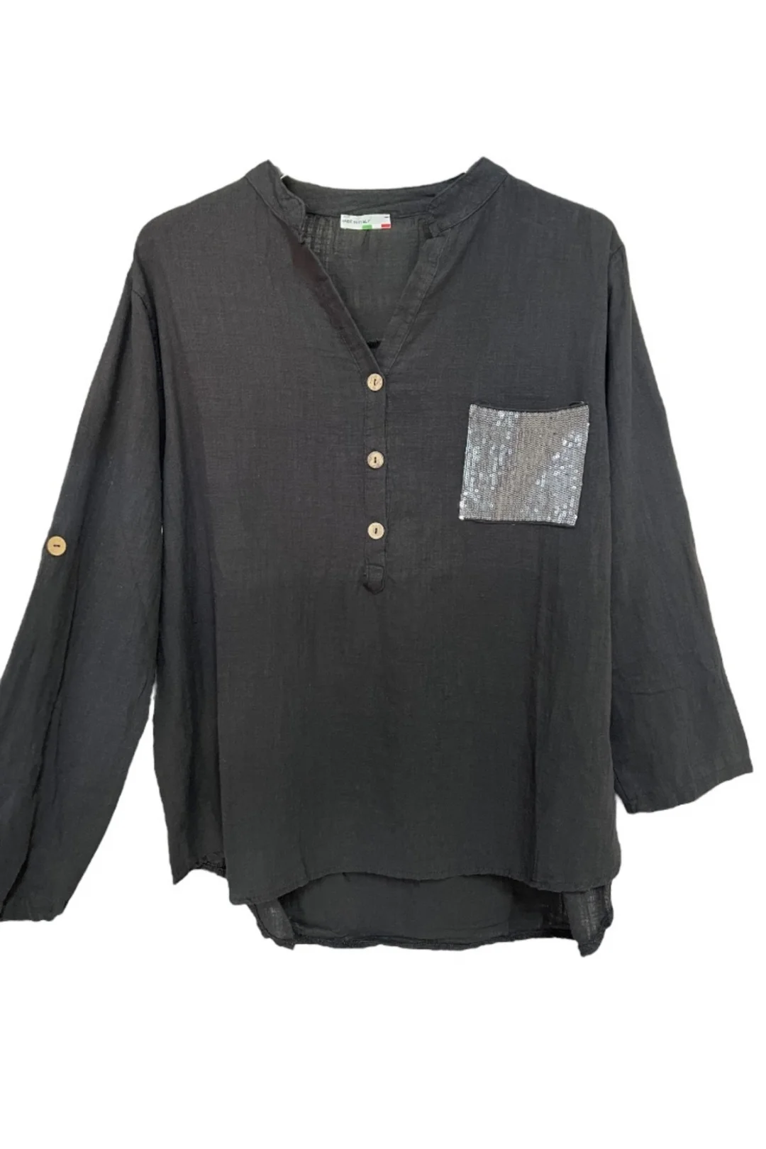 Detay:Payetli ön cep, düğmeli yaka, kolları düğmeli katlanabilir tasarım