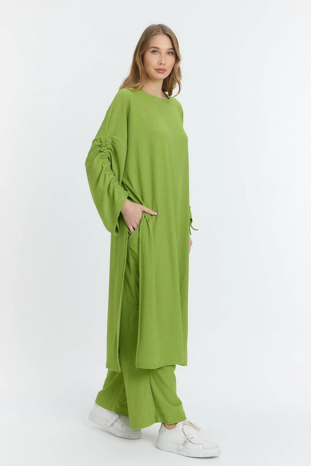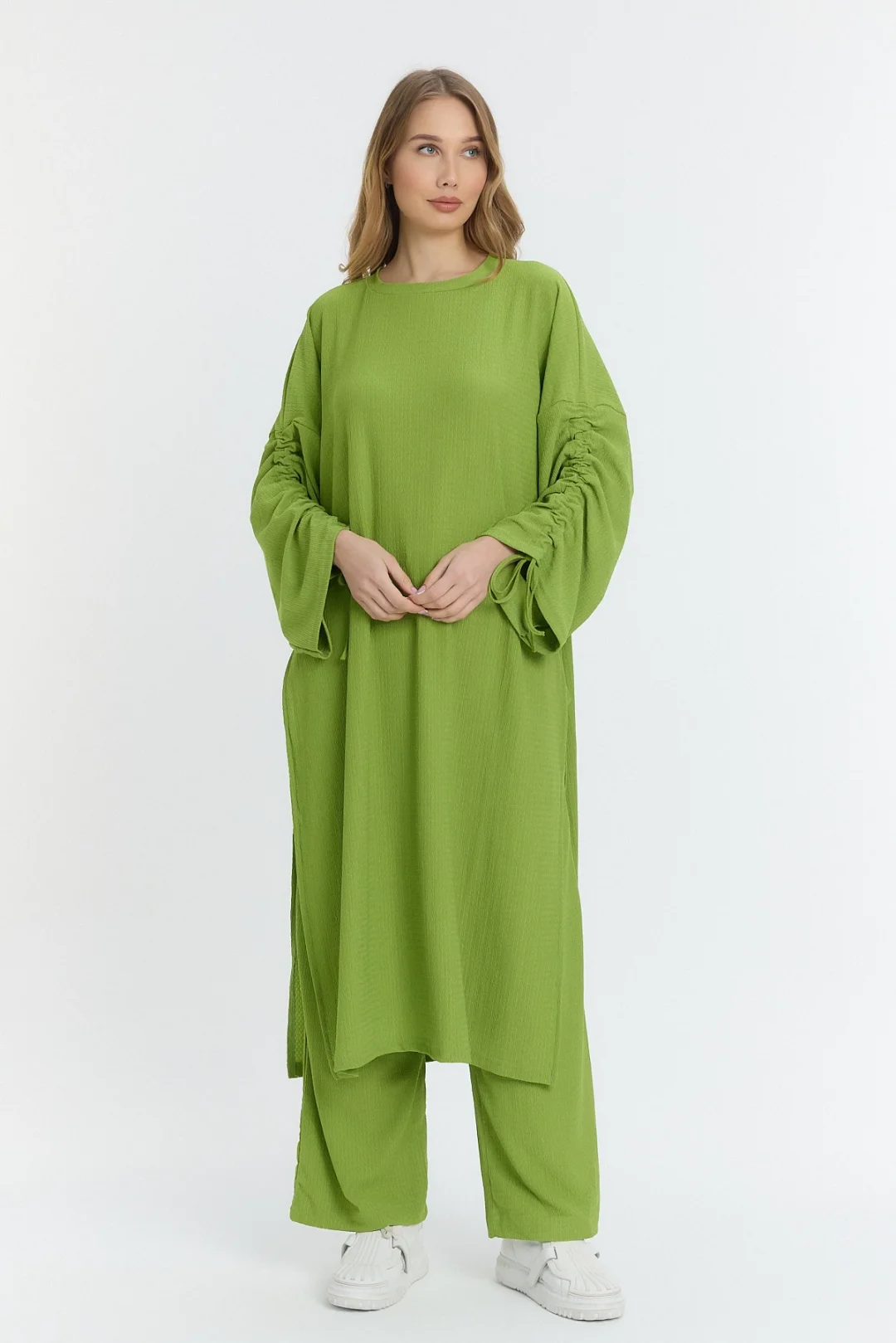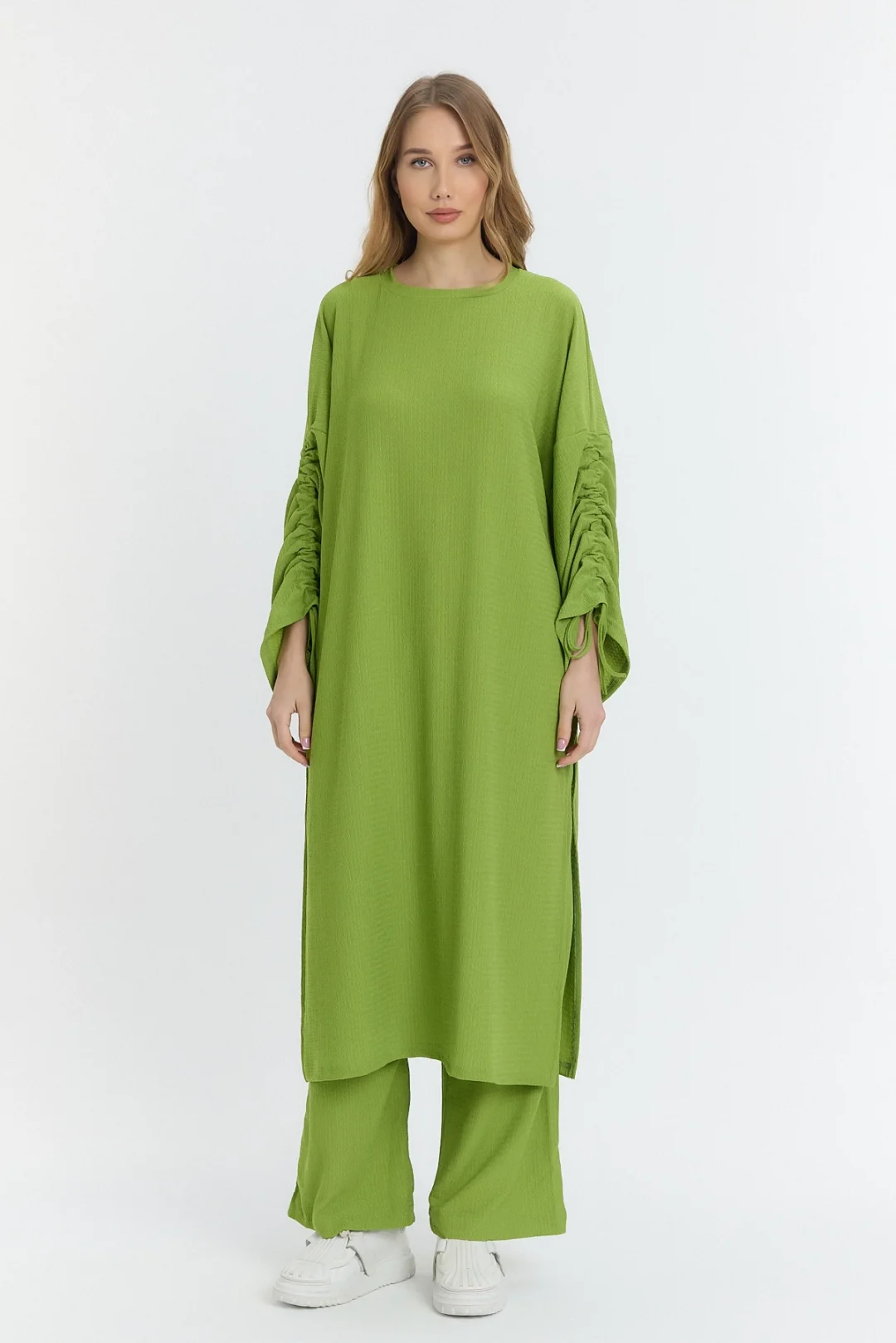 Gardrobunuzun vazgeçilmezi olmaya aday Asansör Kol Detaylı Tunik Takım şimdi sipariş verin!