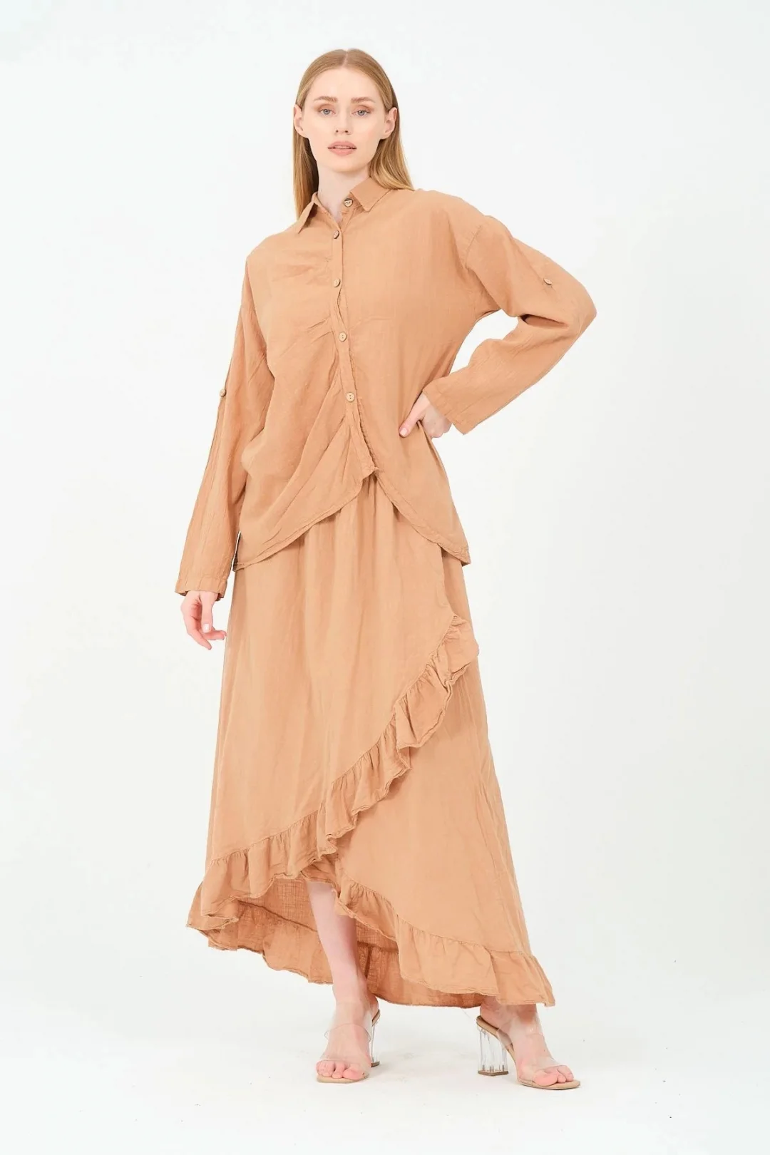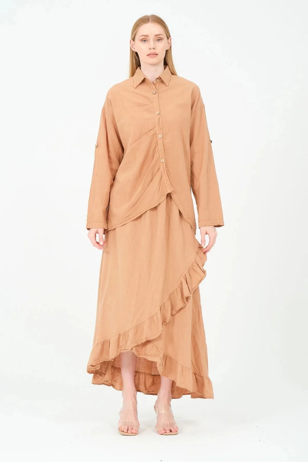 - Rahat kesimiyle günlük kullanım için ideal, asimetrik tasarımıyla dikkat çeken kadın büyük beden gömlek.