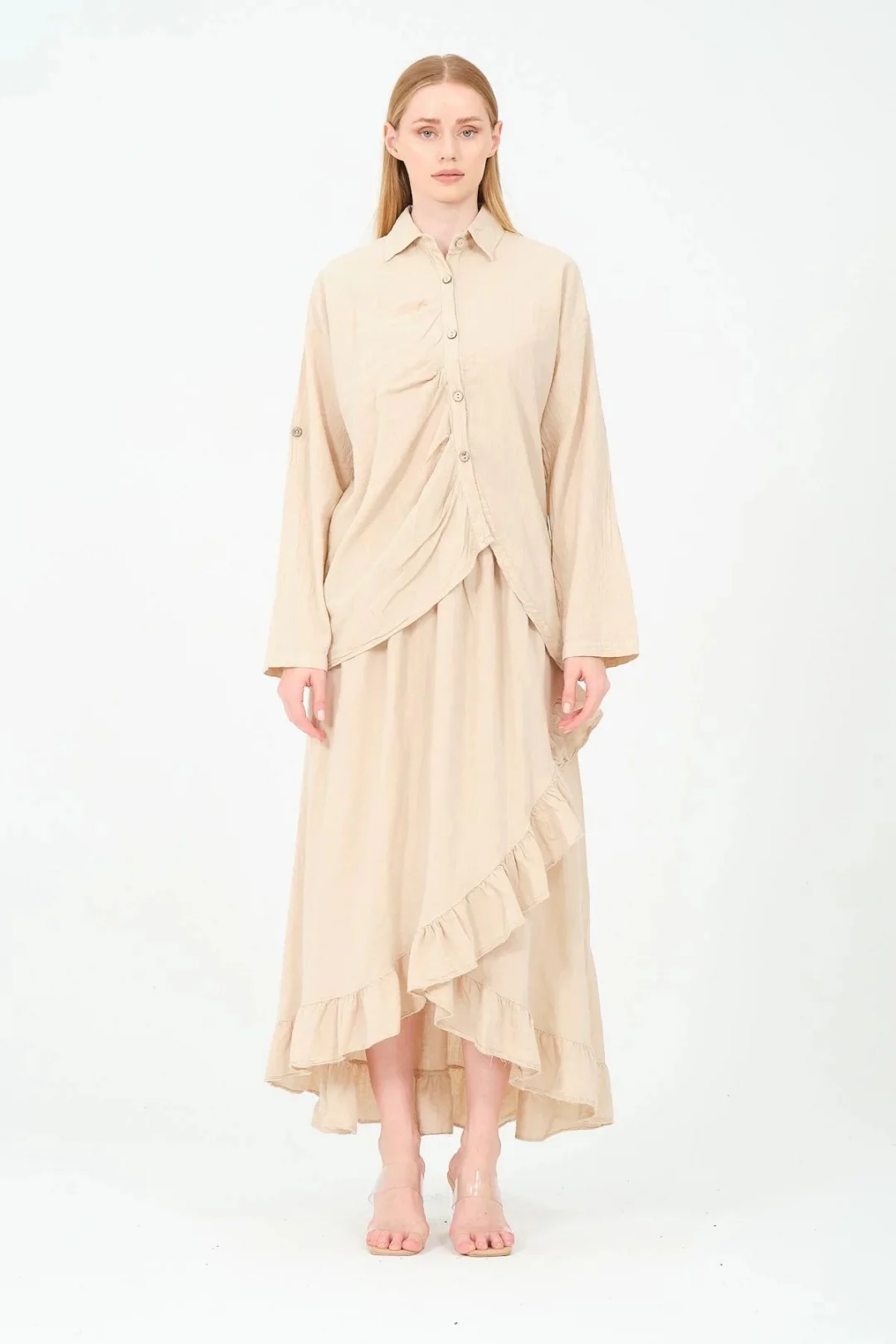 - Rahat kesimiyle günlük kullanım için ideal, asimetrik tasarımıyla dikkat çeken kadın büyük beden gömlek.