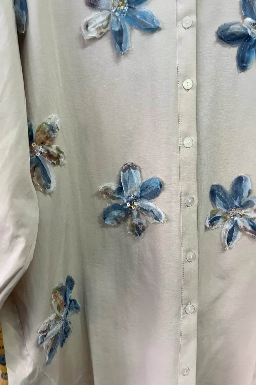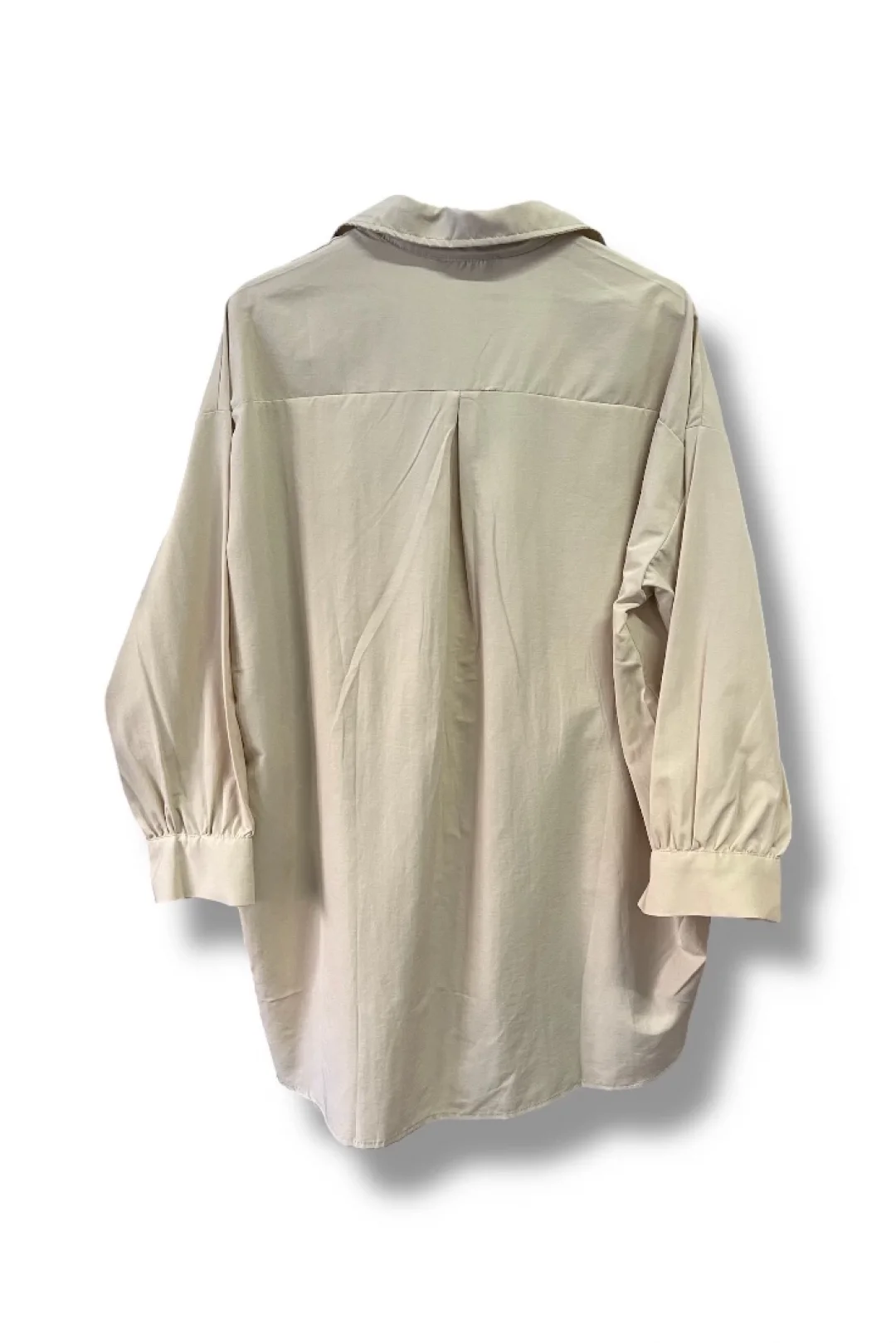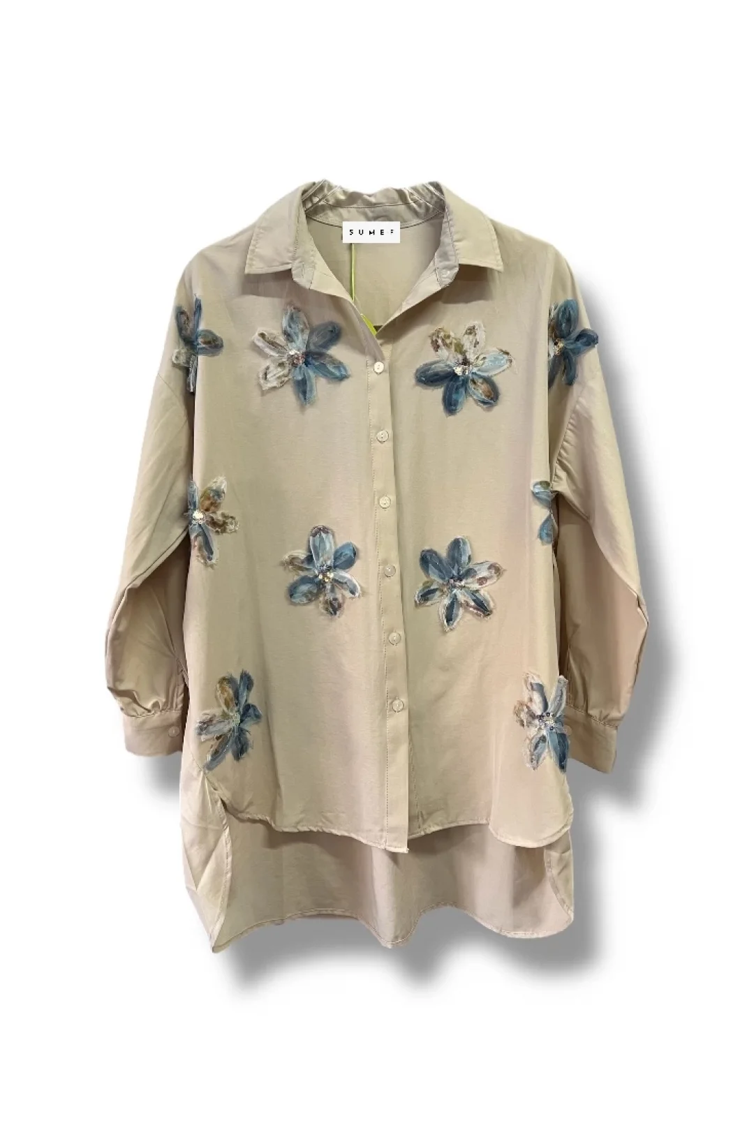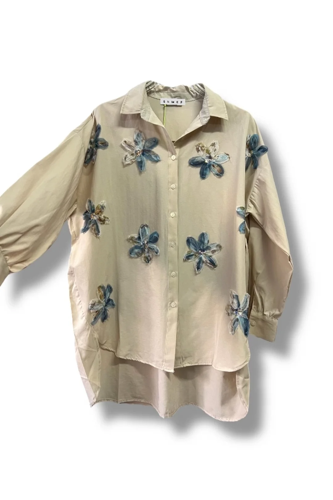 begonya çiçek figürlü oversize kadın gömlek-Bej