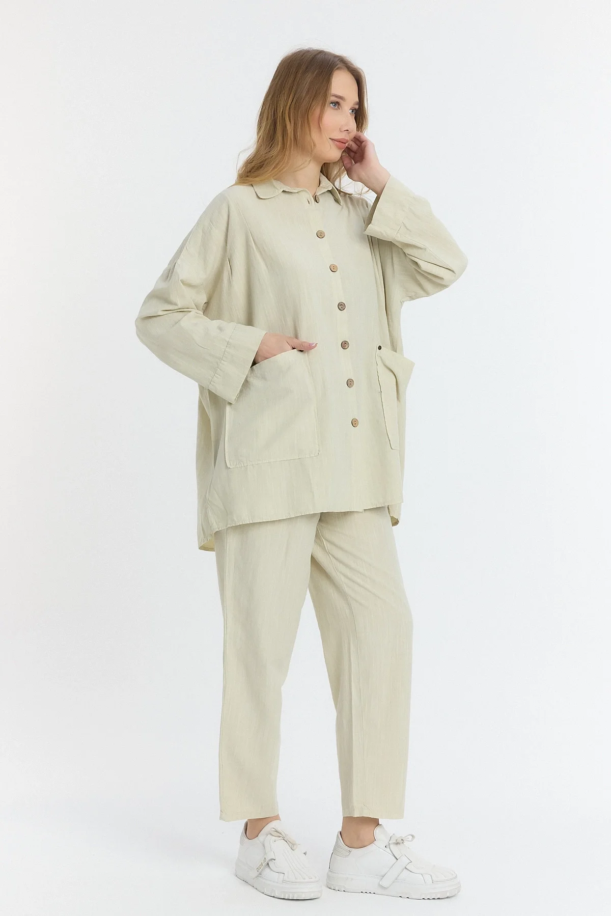 Standart kalıp keten kumaş 38/46 beden uyumlu oversize takım