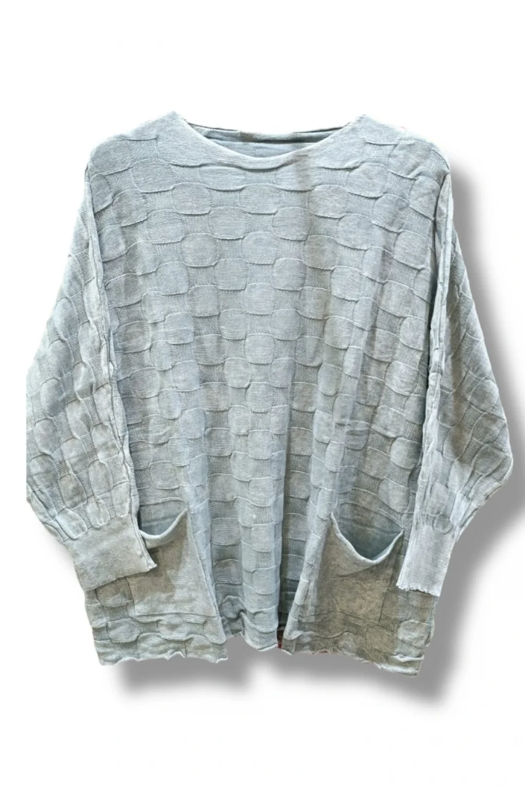 38–48 Beden Uyumlu Merserize Triko Bluz – Dokulu Desenli Gri