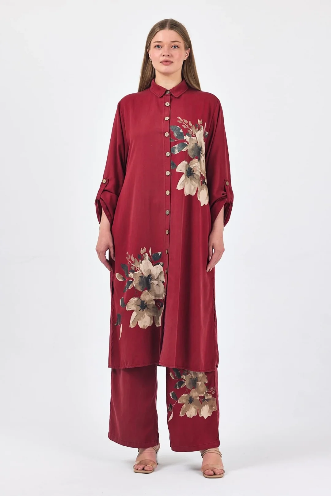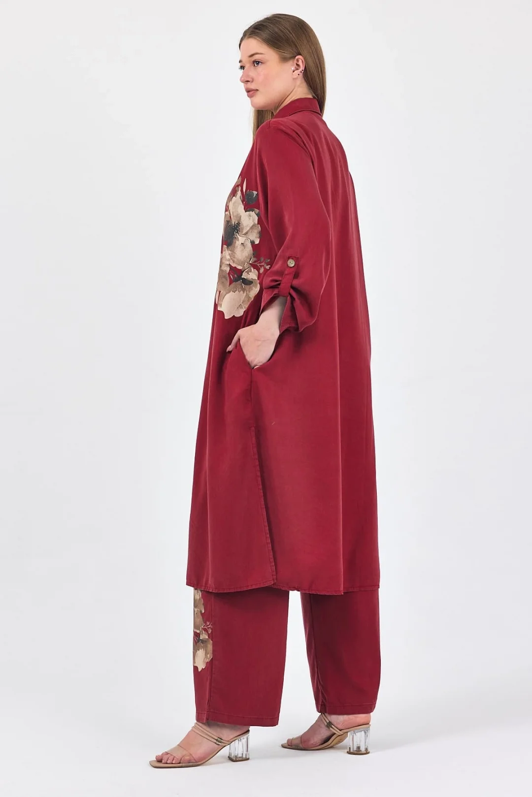 İtalyan desenli uzun takım-bordo