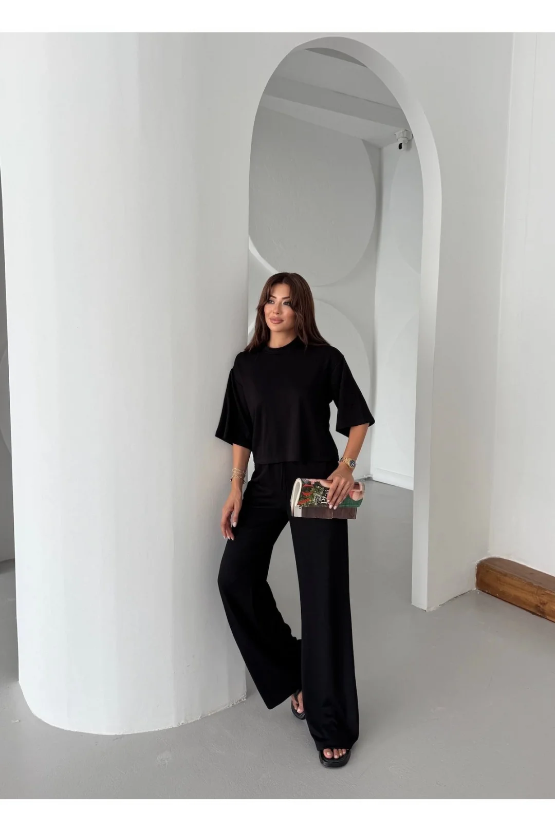Takım İçeriği:Oversize üst + bol paça pantolon