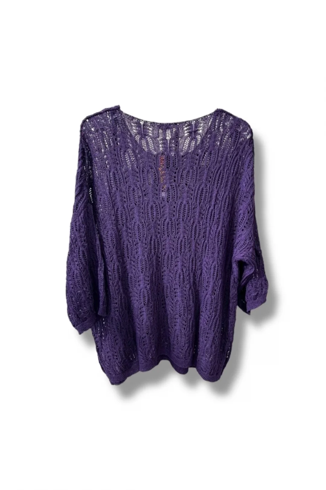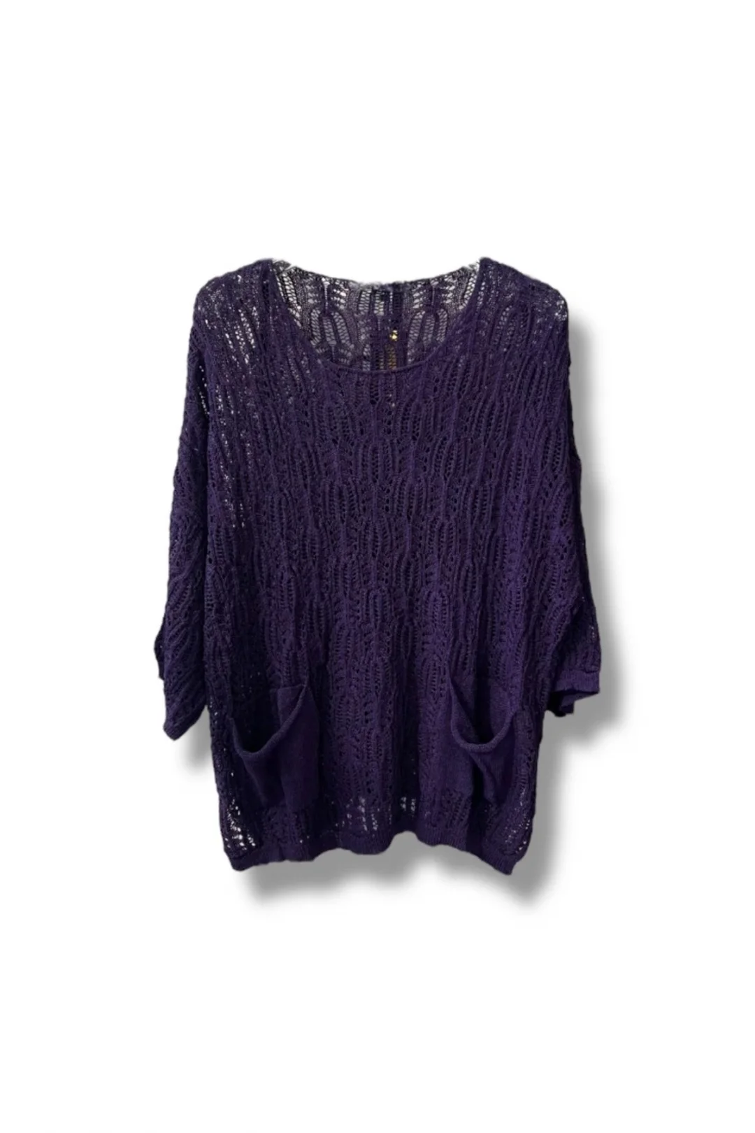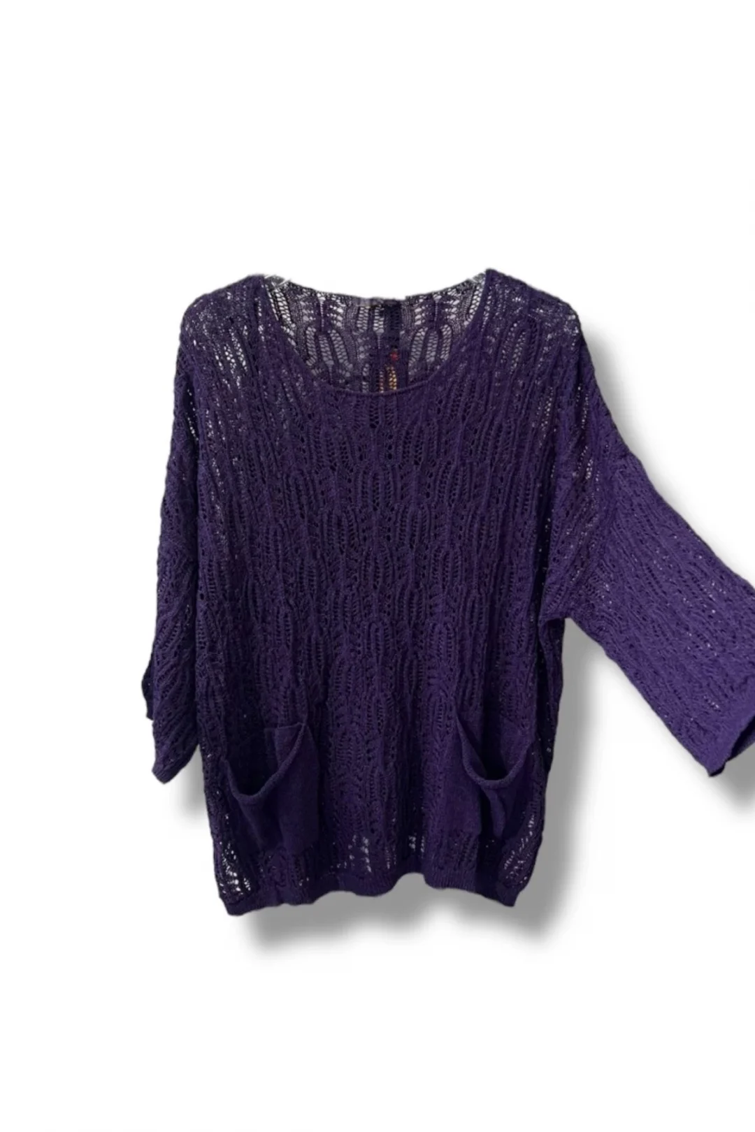 Kadın Merserize Delikli Triko Bluz Cepli Salaş Model-mor