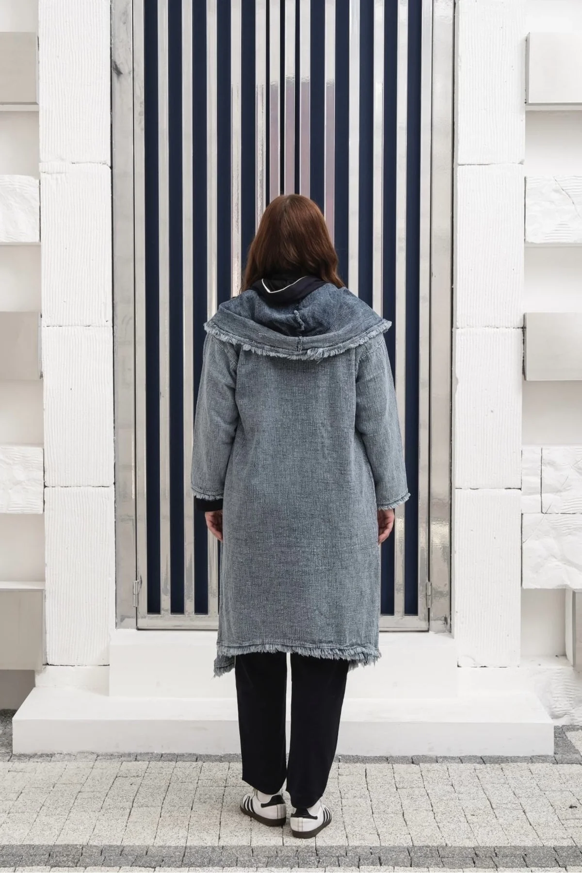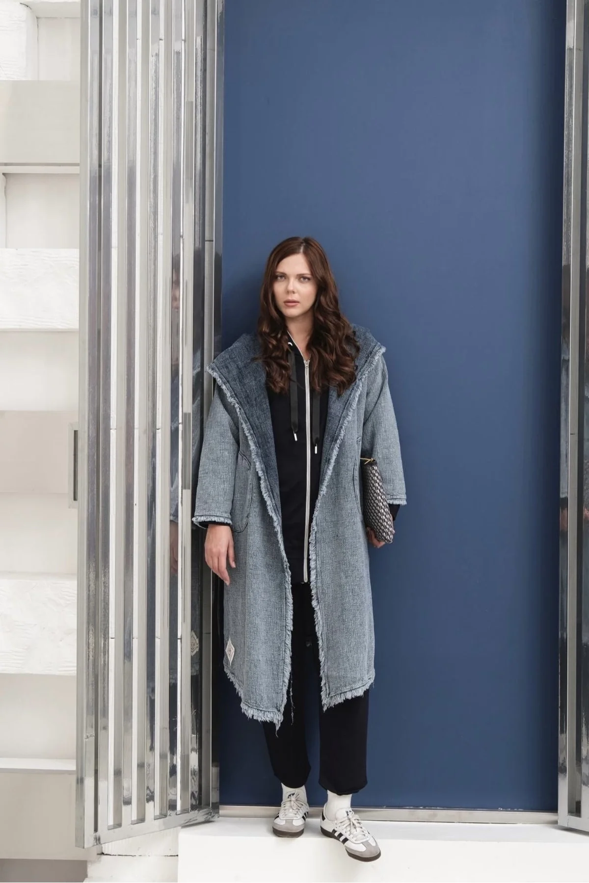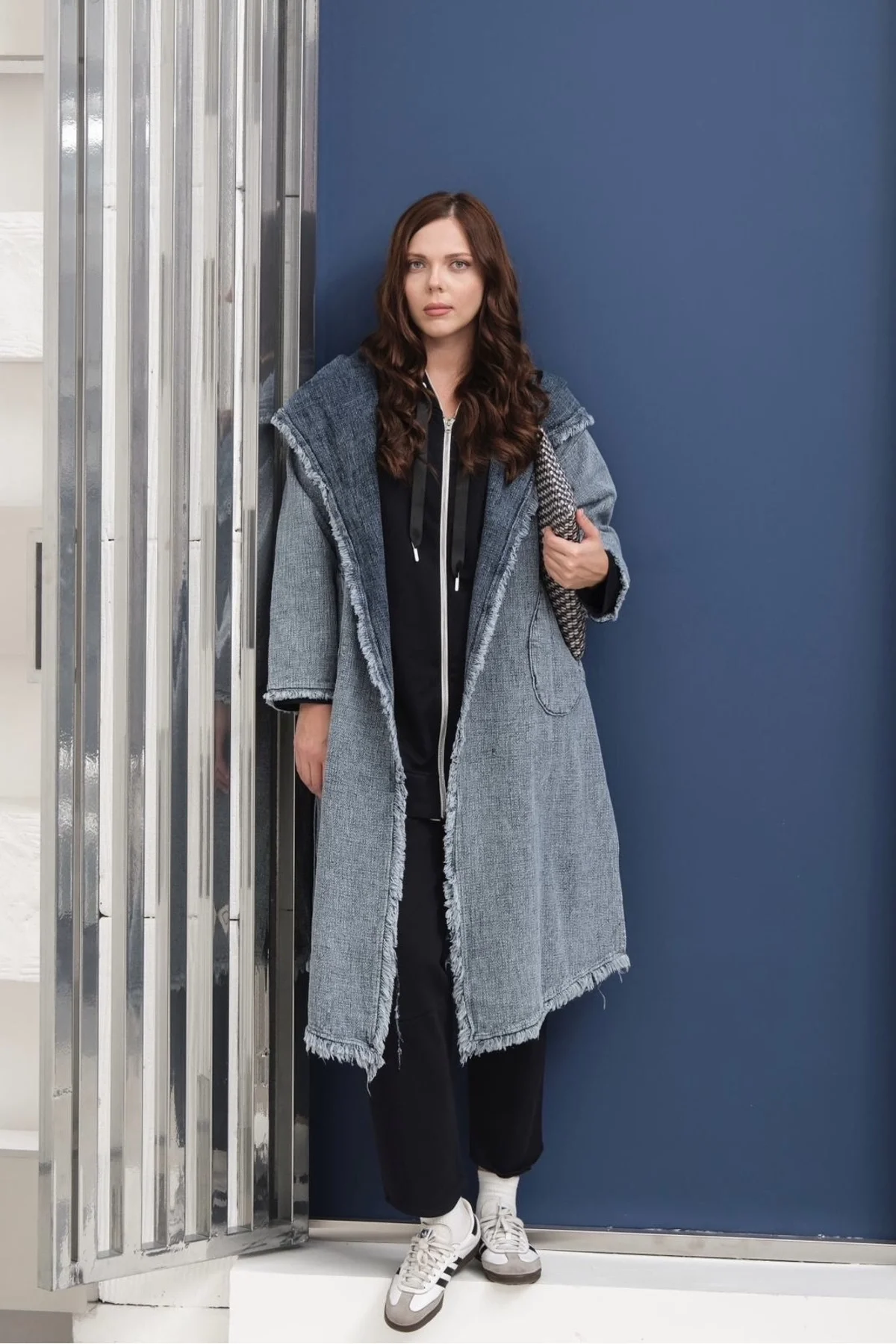 Oversize Kadın Kot Kapüşonlu Uzun Ceket - 38-46 Beden Arası Uyumlu - Günlük Rahat Şık