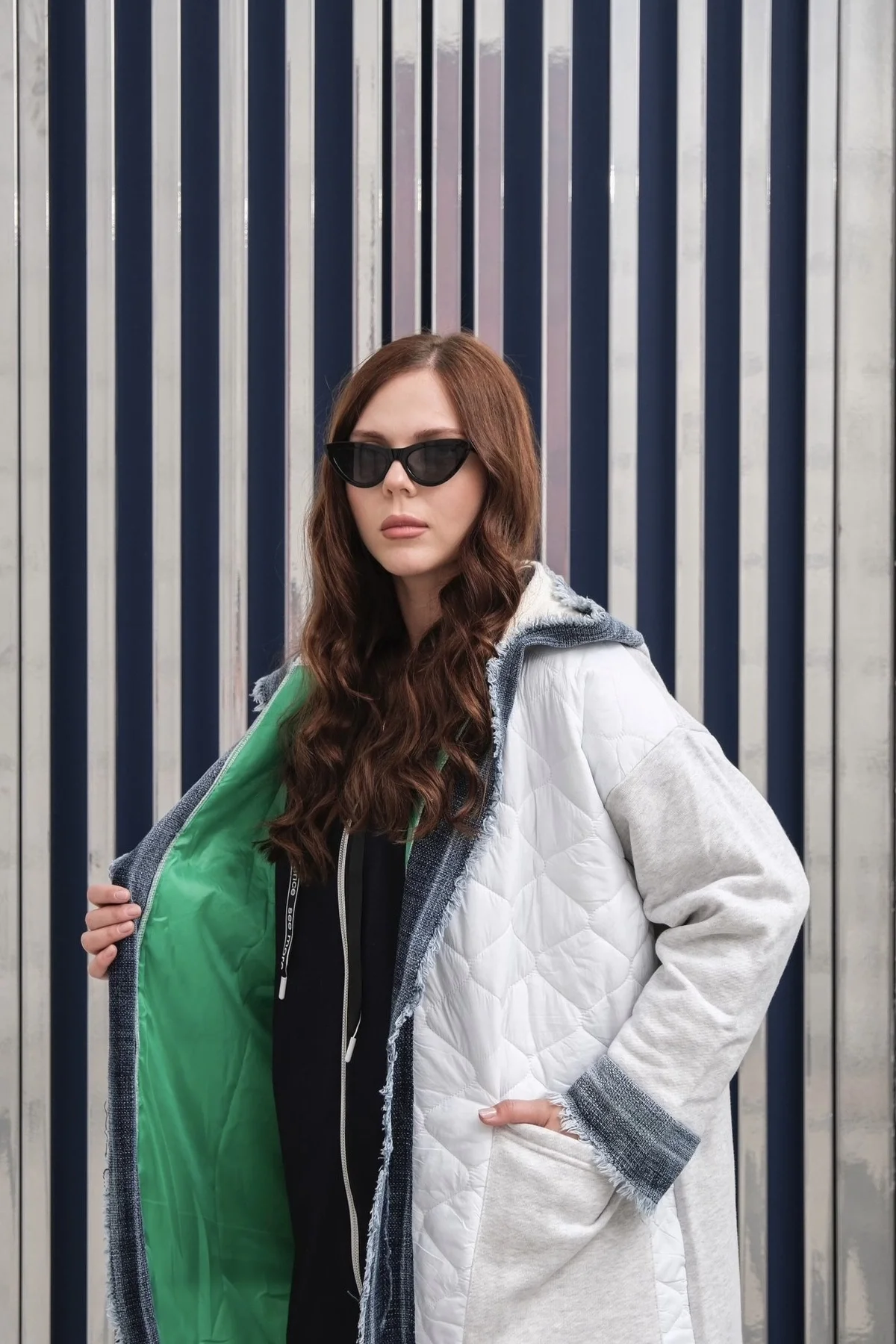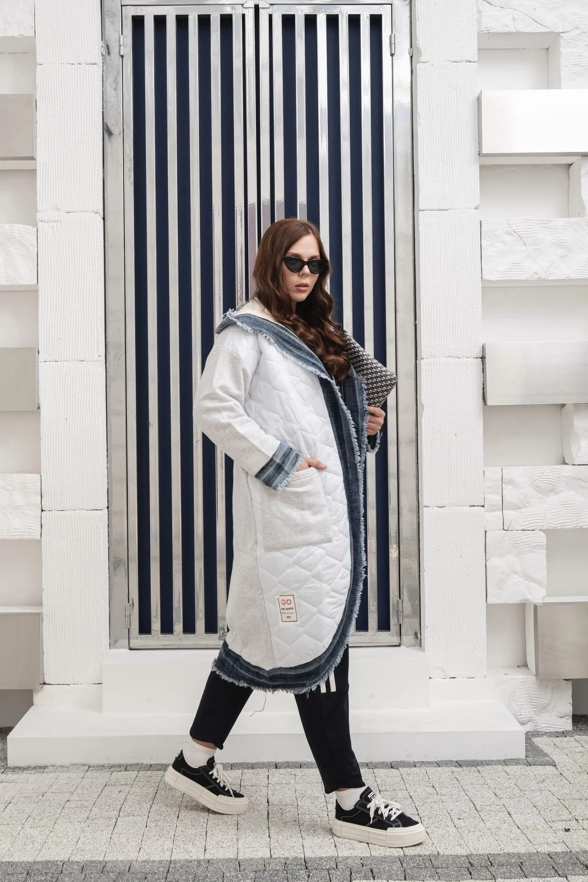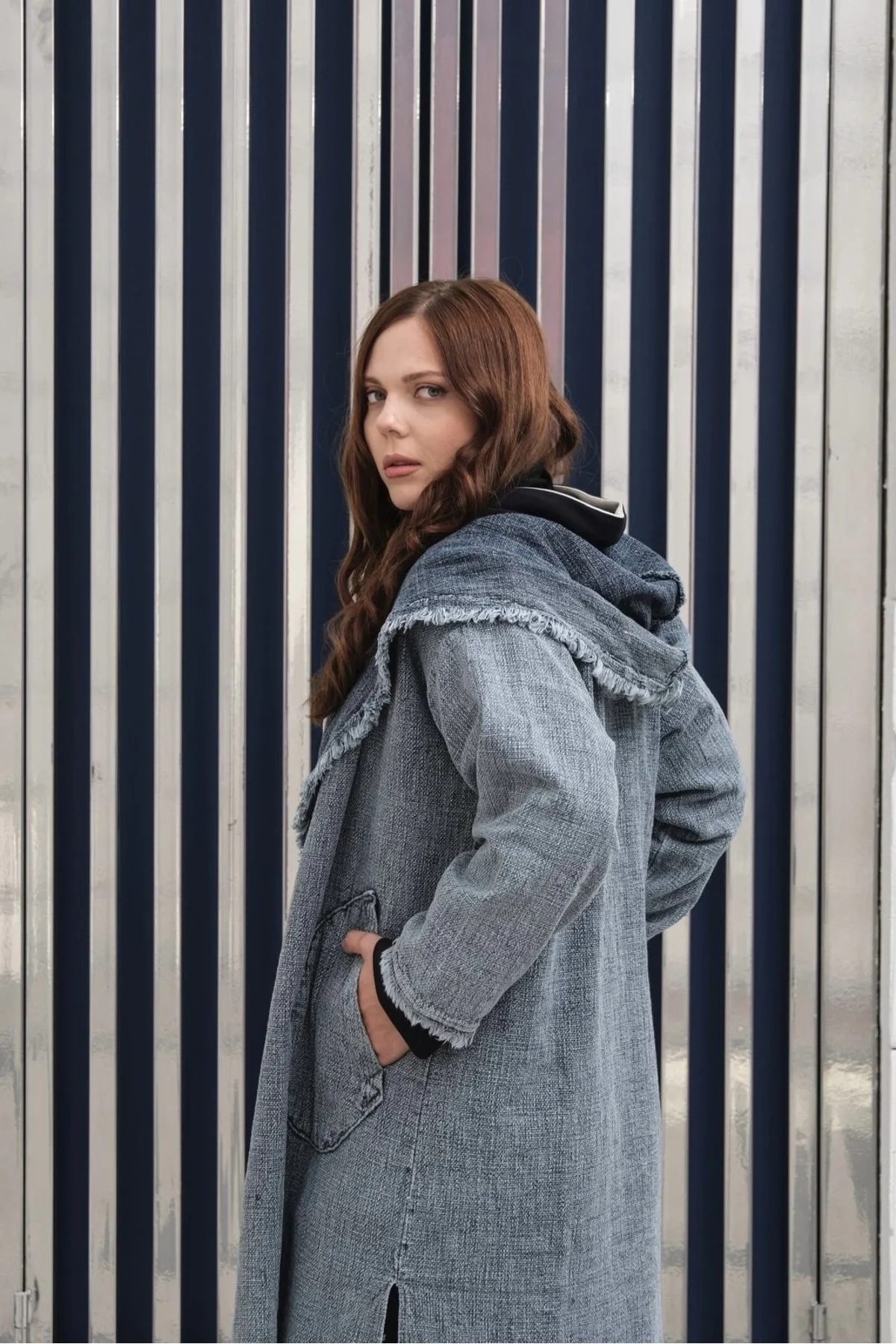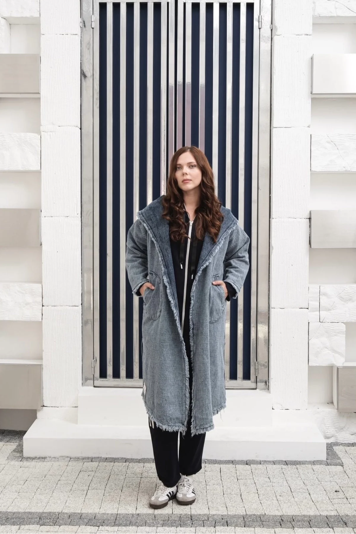 Oversize Kadın Kot Kapüşonlu Uzun Ceket - 38-46 Beden Arası Uyumlu - Günlük Rahat Şık