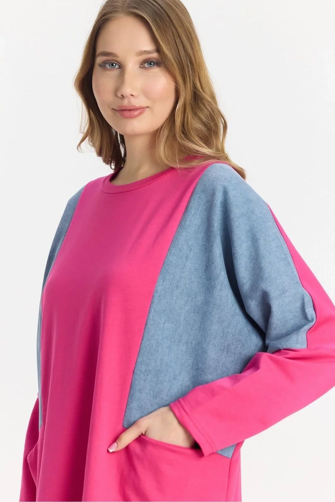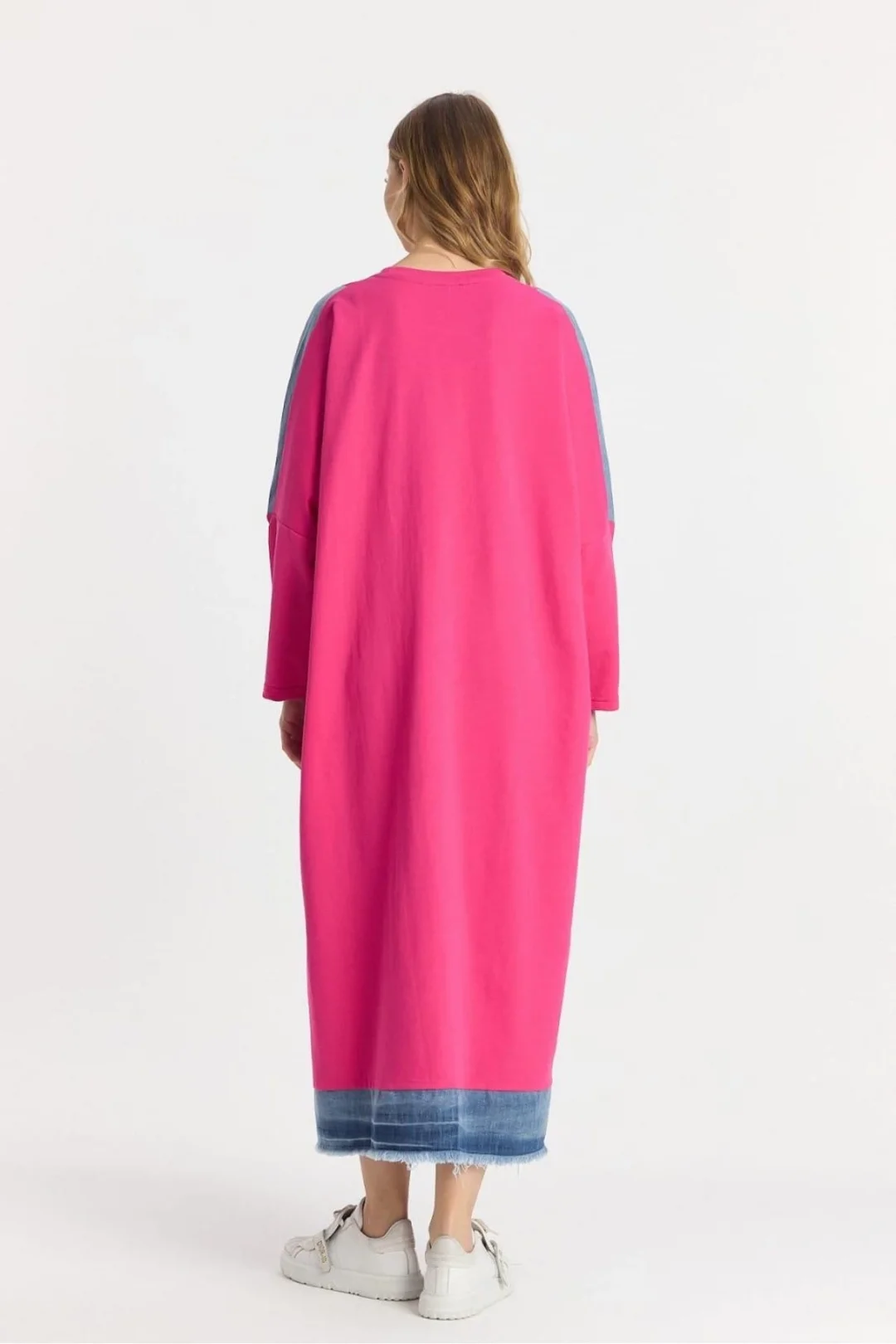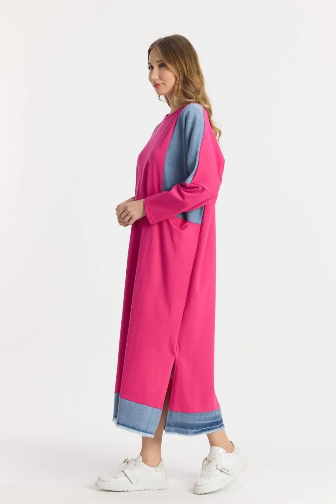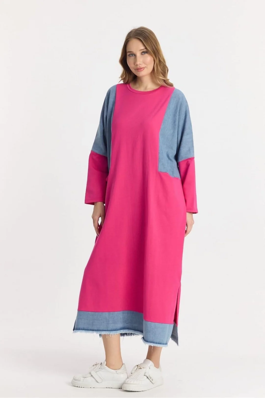 Şıklığı ve rahatlığı bir arada arayanların tercihi olan Kot Parçalı Oversize Elbise, hem günlük hayatta hem özel davetlerde fark yaratmanızı sağlar.
