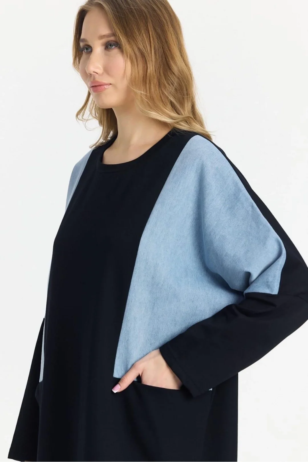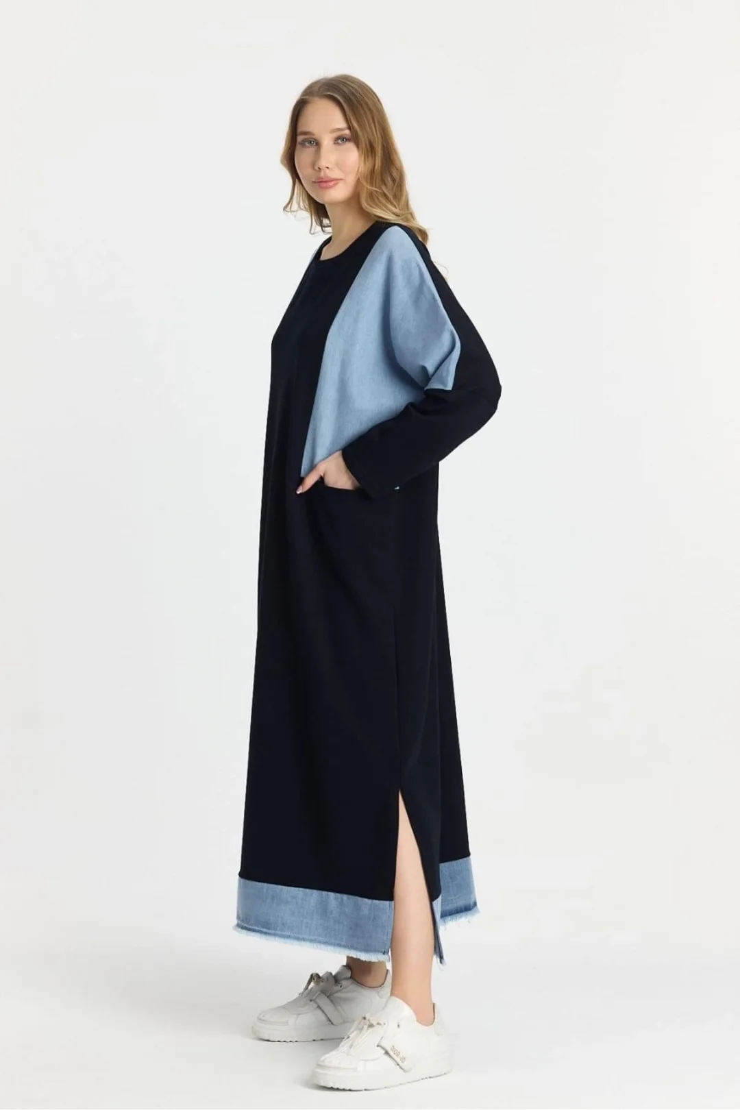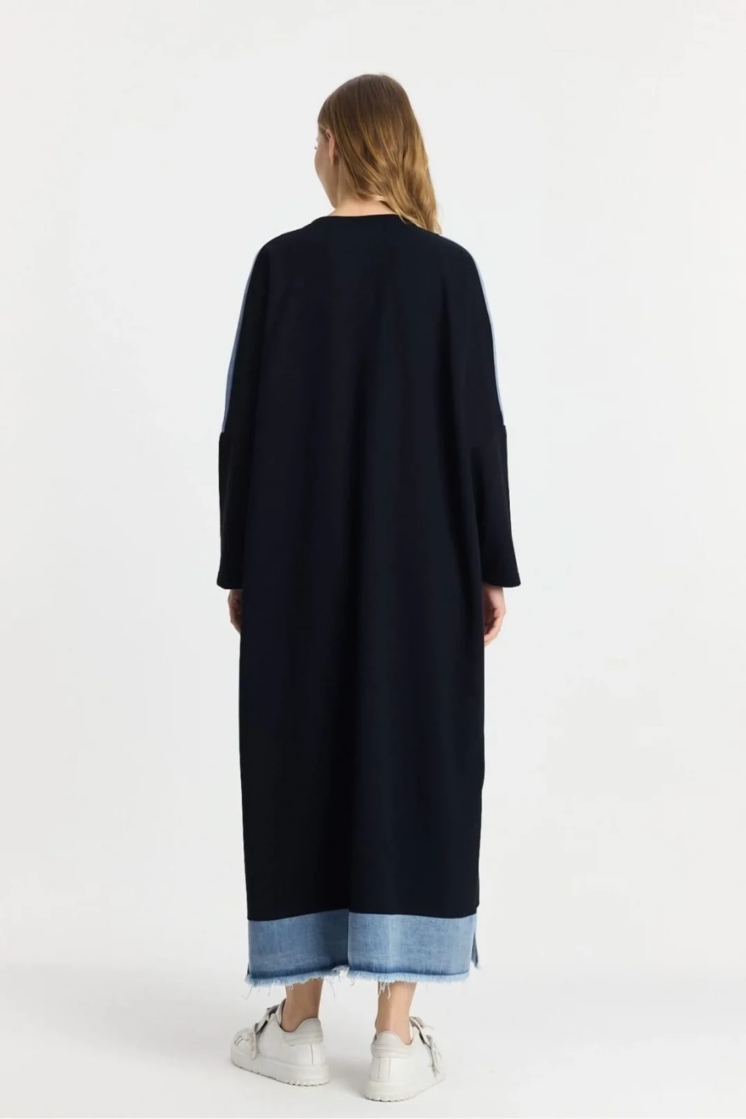 Şıklığı ve rahatlığı bir arada arayanların tercihi olan Kot Parçalı Oversize Elbise, hem günlük hayatta hem özel davetlerde fark yaratmanızı sağlar.