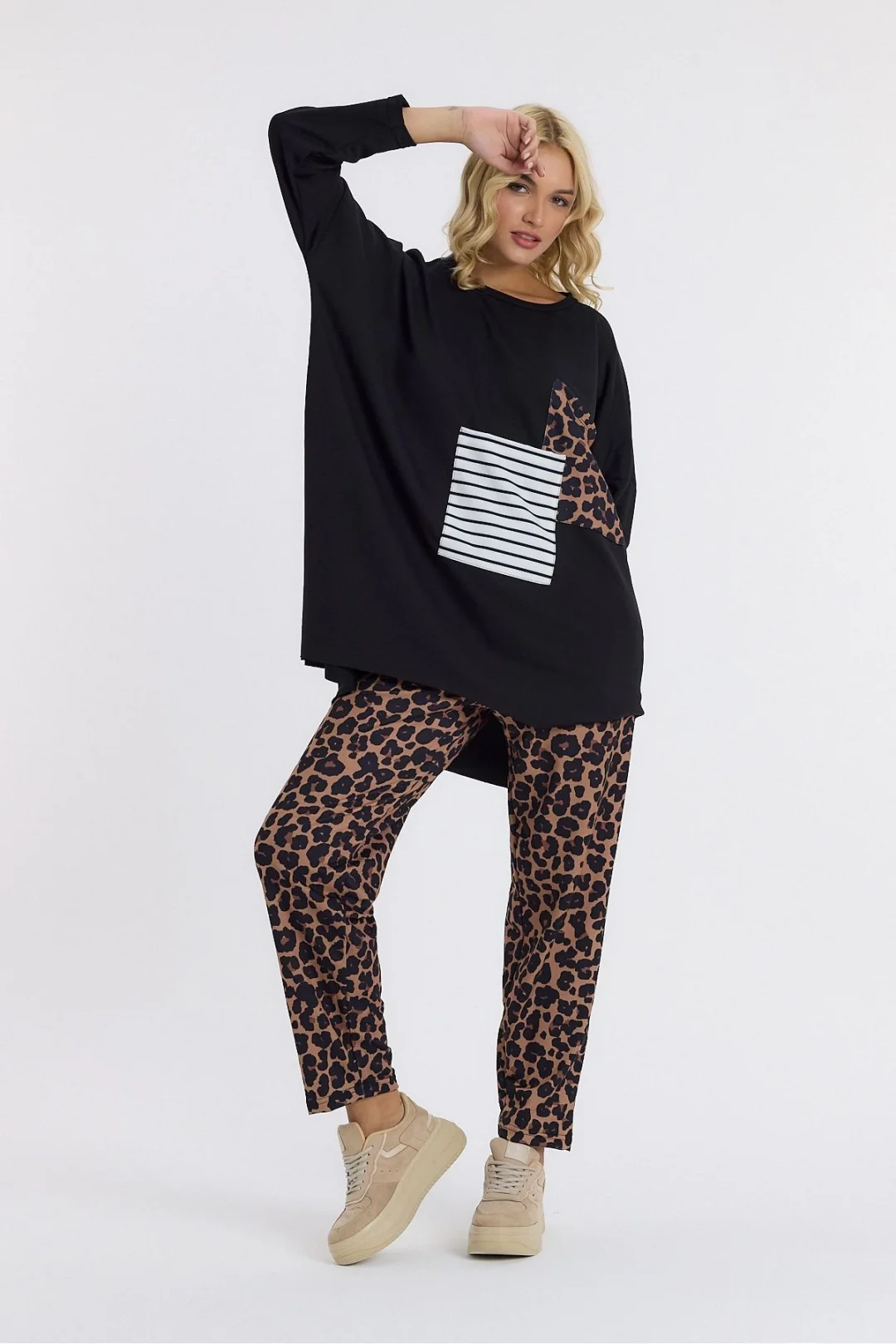 SUMEF Leopar desen cep detaylı takım, şıklığı ve rahatlığı bir arada sunar. Standart beden 38/44 beden arası uyumludur.