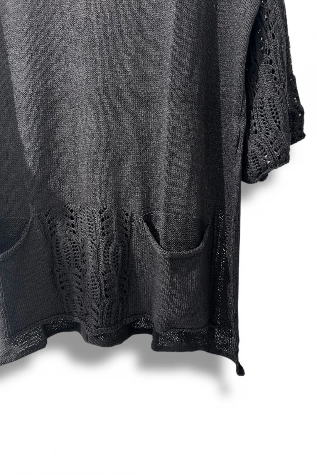 Kollarındaki ve etek kısmındaki zarif ajur (delikli örgü) detaylarıyla hem günlük hem de şık kombinlerinizde fark yaratır.