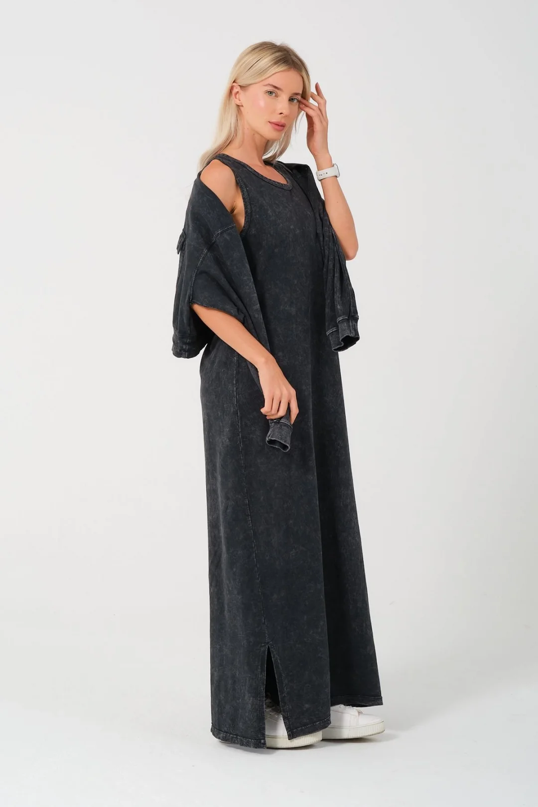 Altın Düğme Detaylı Atlas & Şifon Kombin Takım Elbise - Siyah