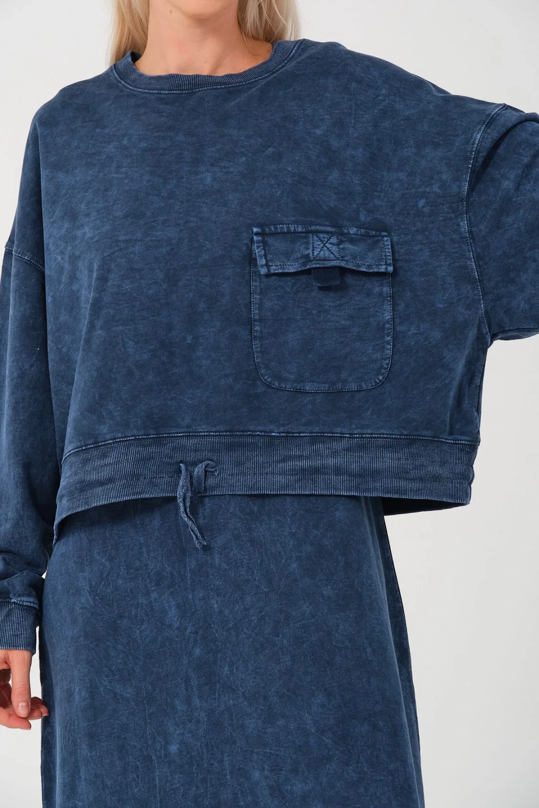 İki cepli yıkamalı kare desen pamuk triko-Gri