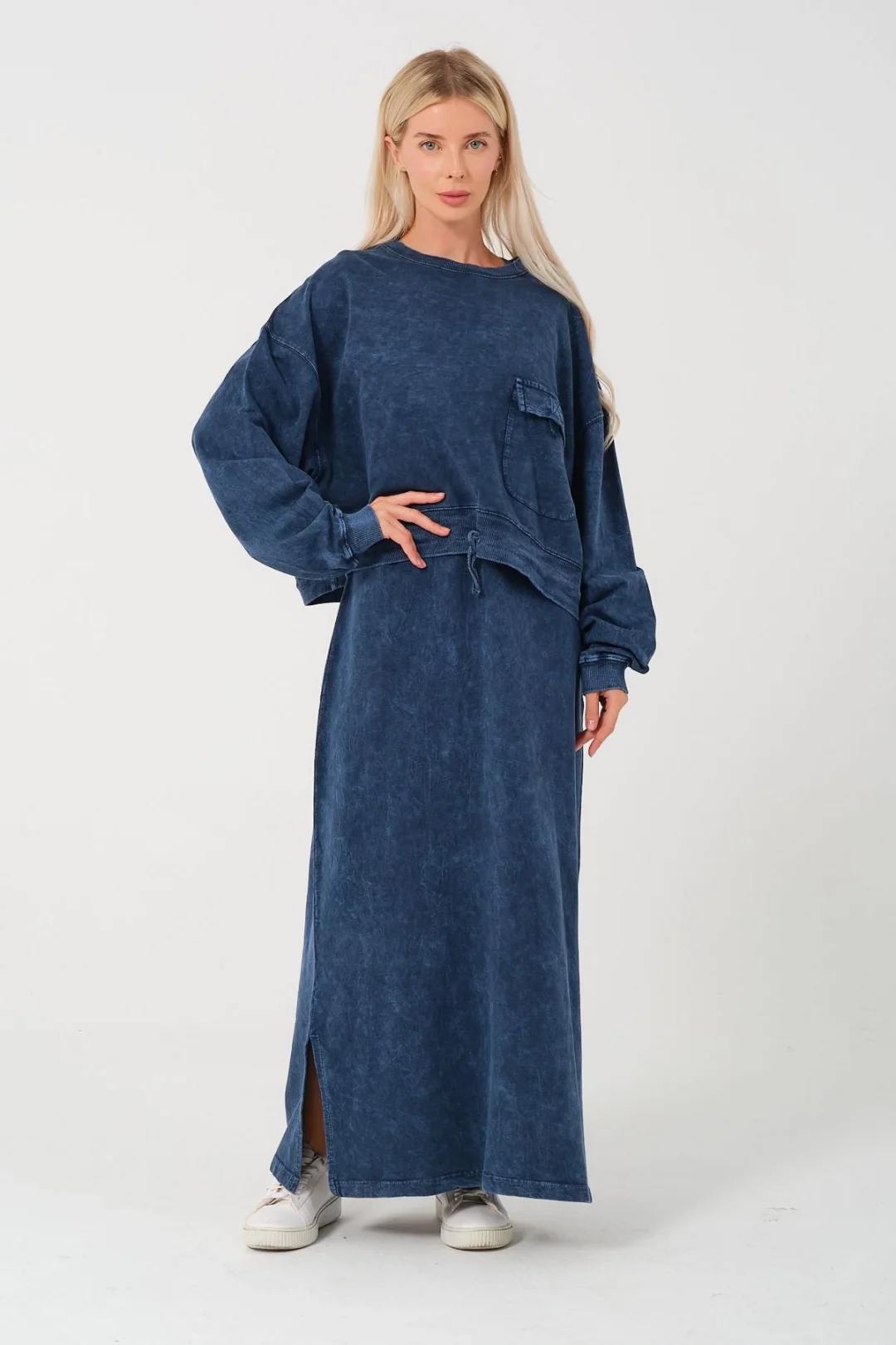 Organik pamuk cepli ikili takım-indigo
