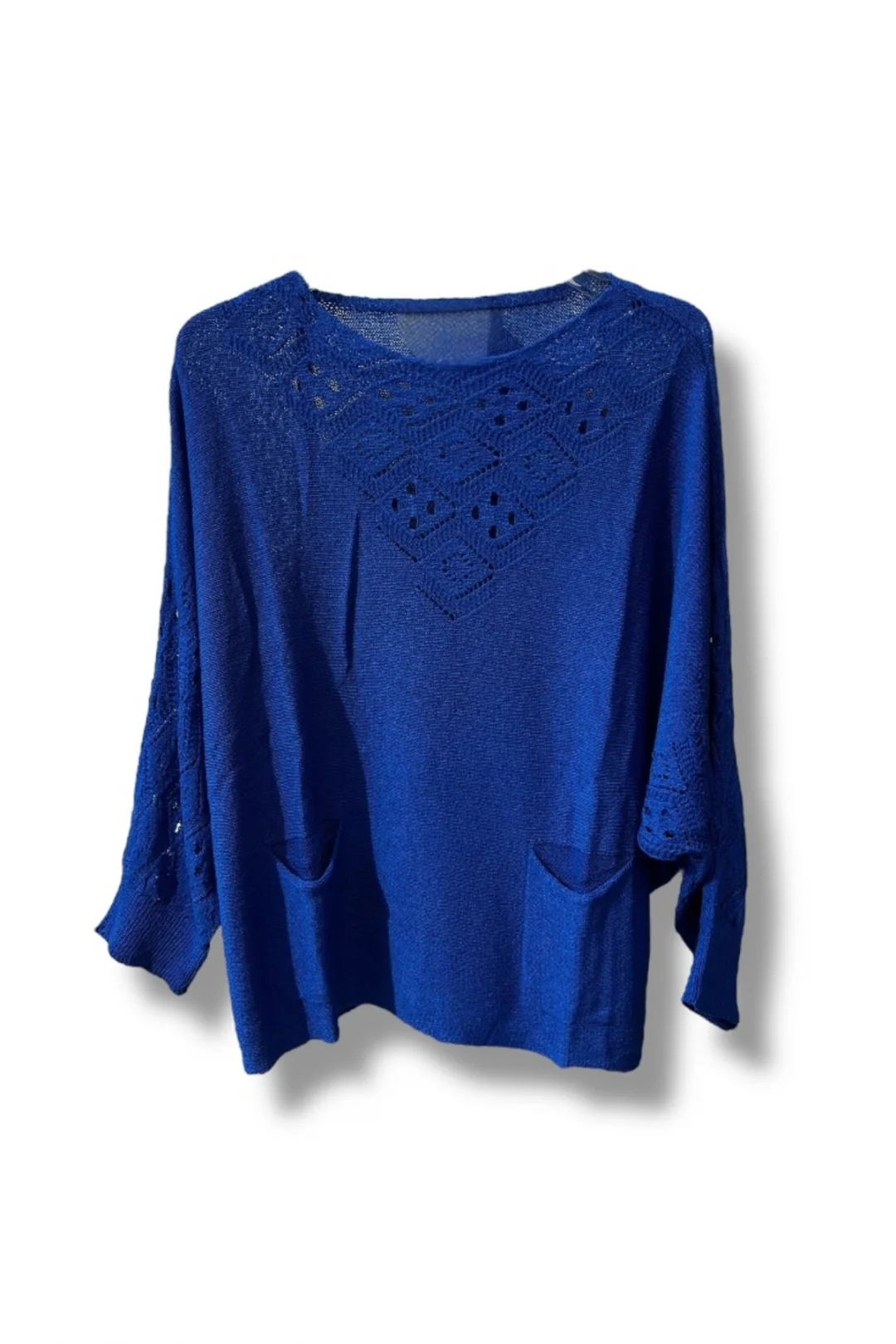 Modern ve şık tasarımıyla dikkat çeken oversize merserize triko bluz, rahatlığı ve tarzı bir arada sunuyor. %100 merserize pamuktan üretilen bu ince dokulu bluz, yaz ve mevsim geçişleri için idealdir. Göğüs ve kol kısmındaki ajurlu örgü detayı ile zarif bir görünüm sunarken, ön kısmındaki cepler de hem kullanışlı hem de şık bir detay olarak öne çıkıyor.