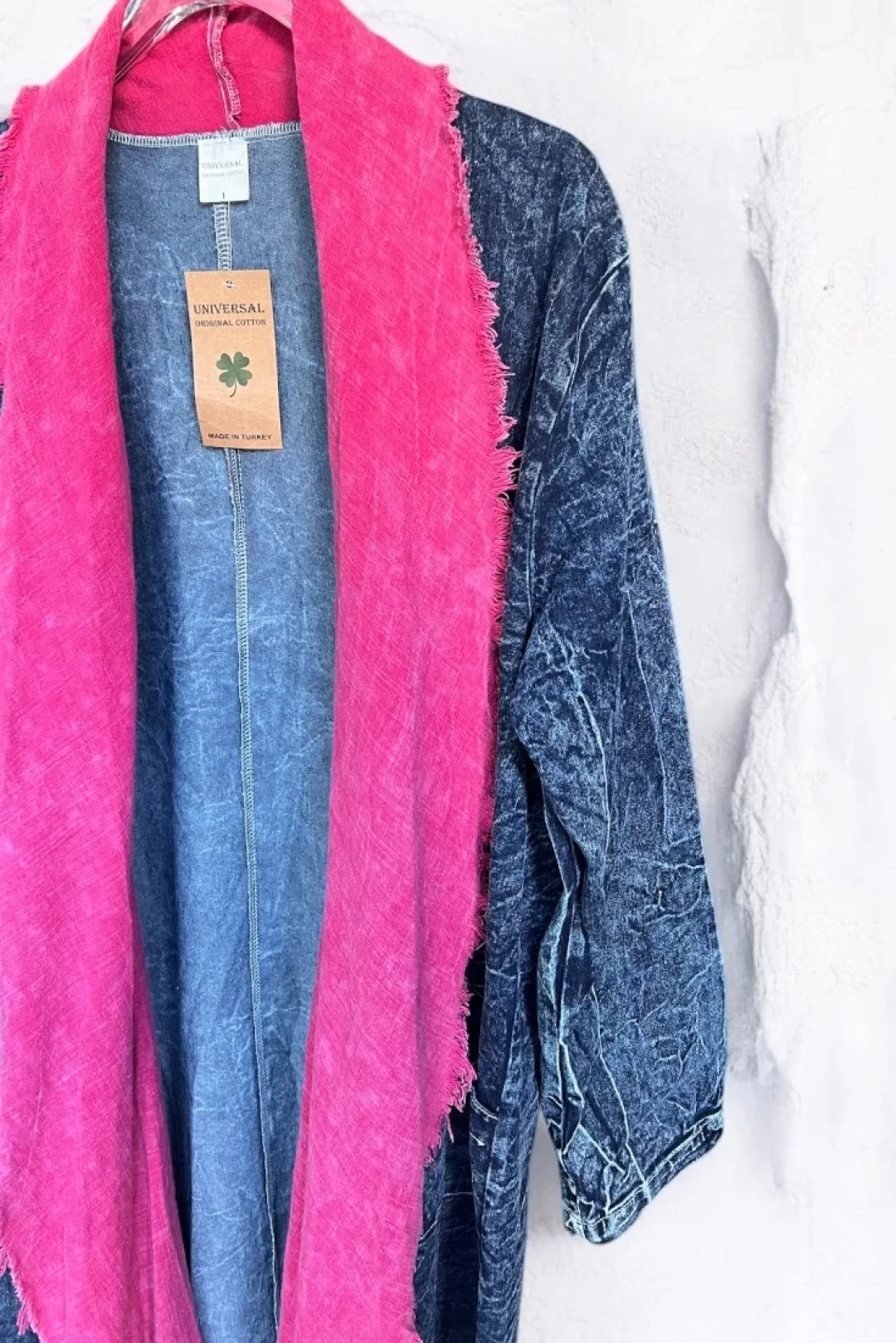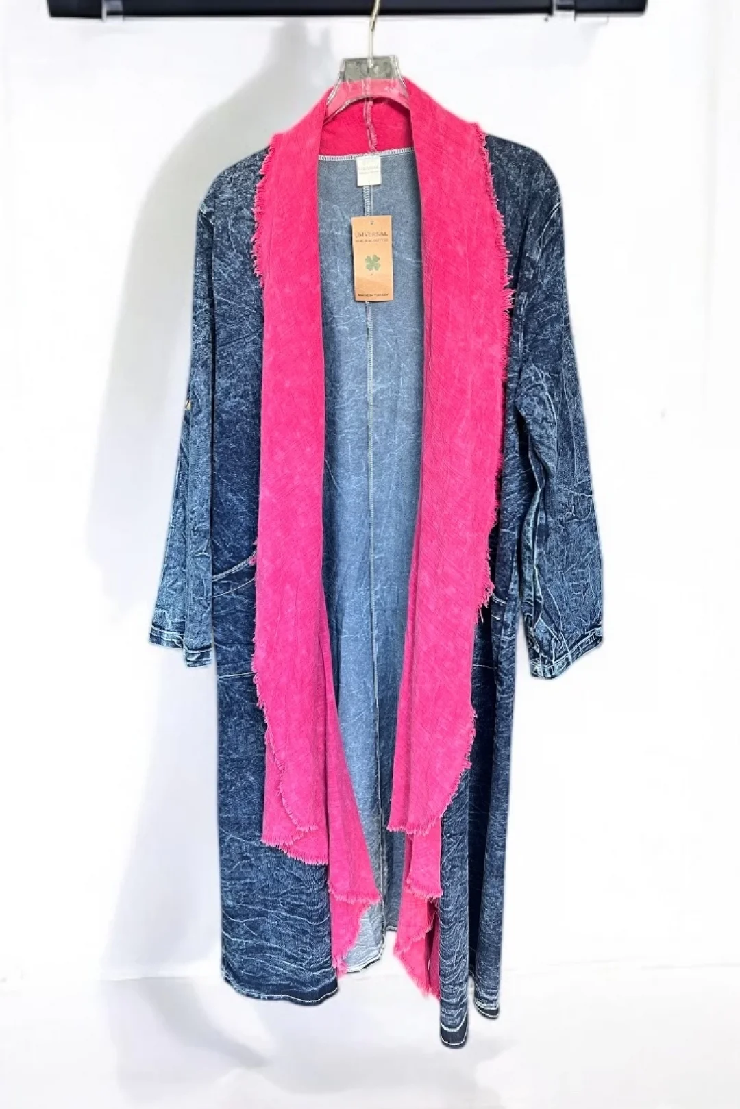 Sumef markasının pamuk garnili kot kaftanı, şıklığı ve rahatlığı bir arada sunar. Standart beden olarak 38-44'e uyumludur.
