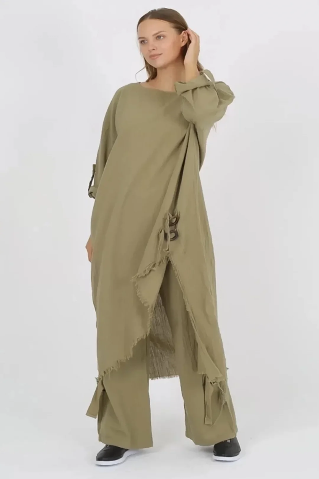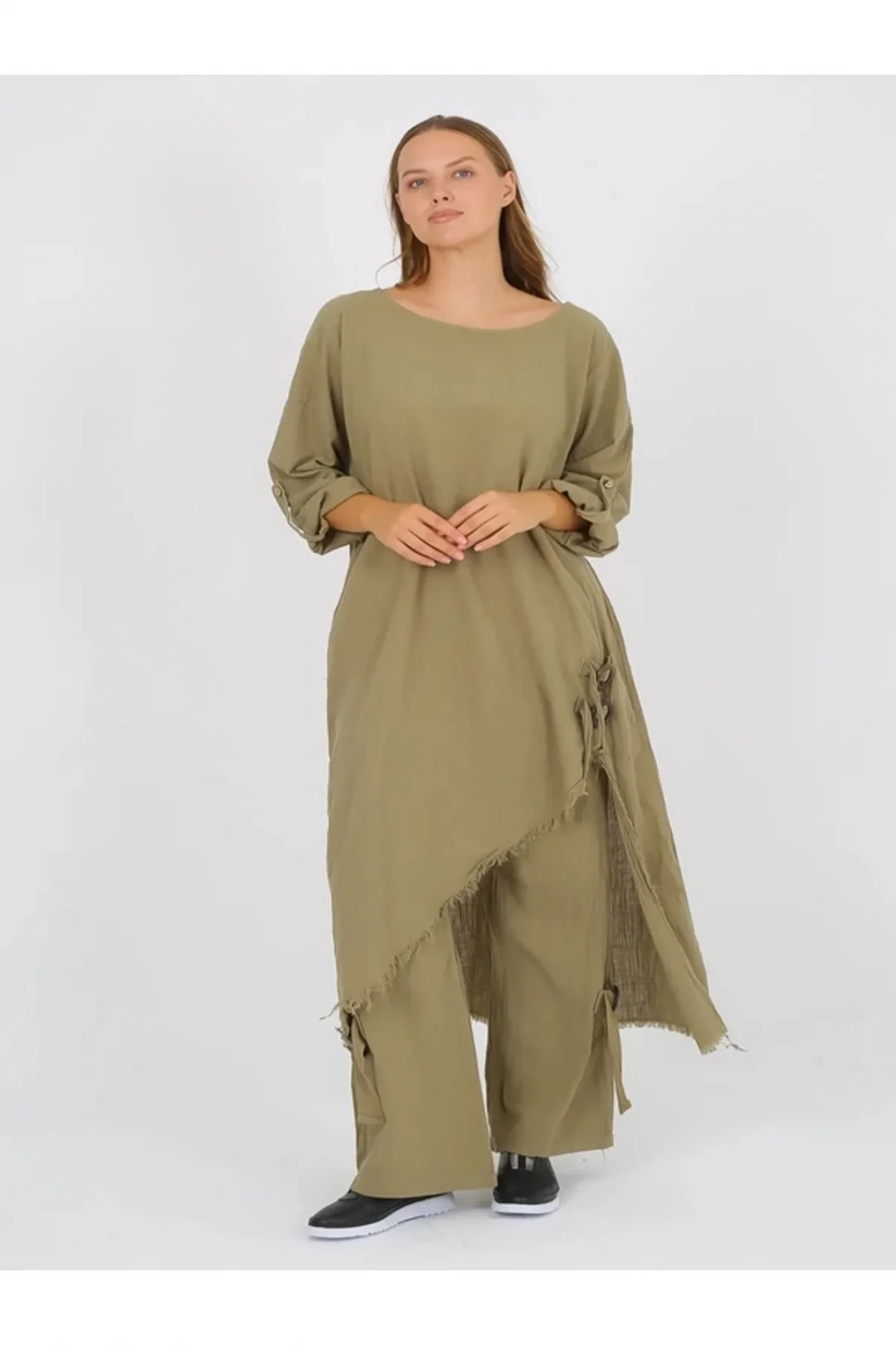 Kadın Pamuk Pantolon ve Uzun Bluz Alt Üst Takım