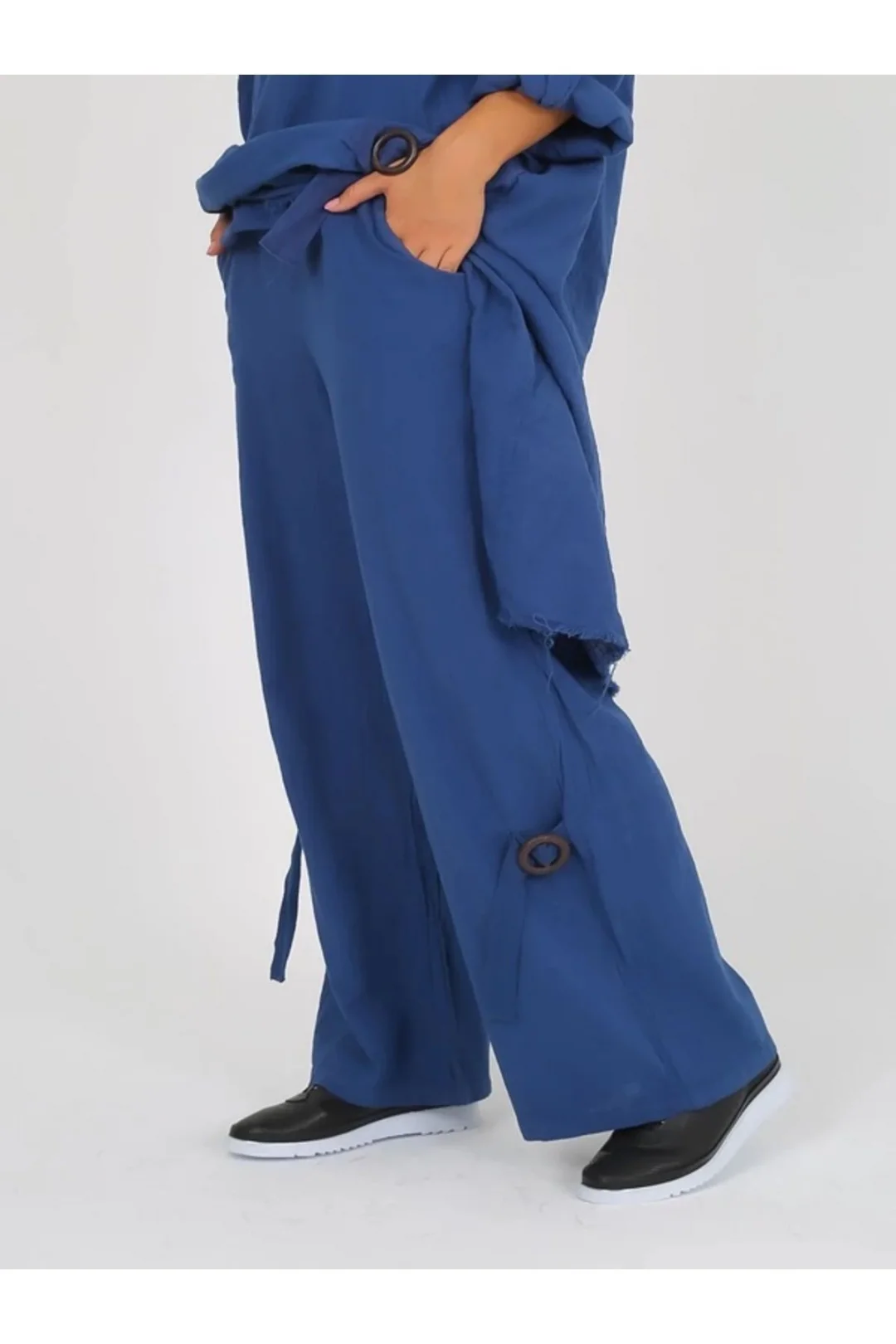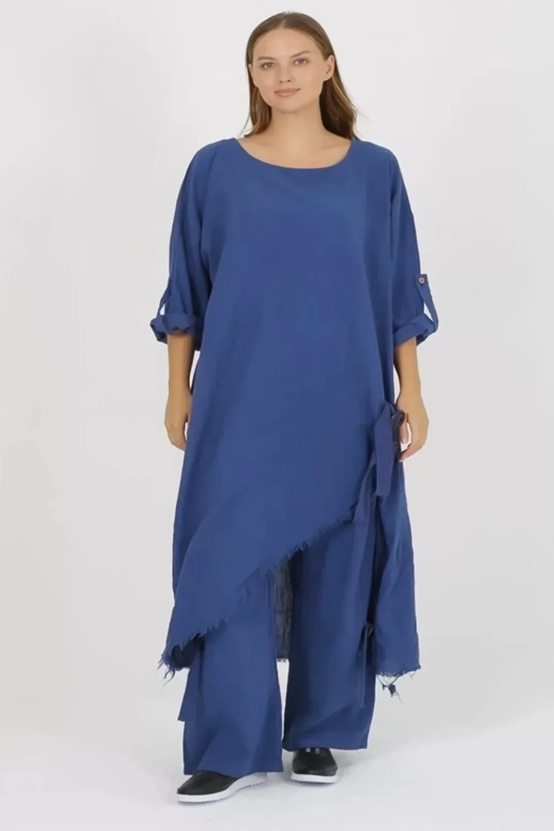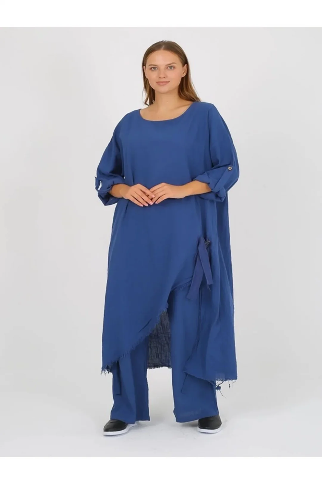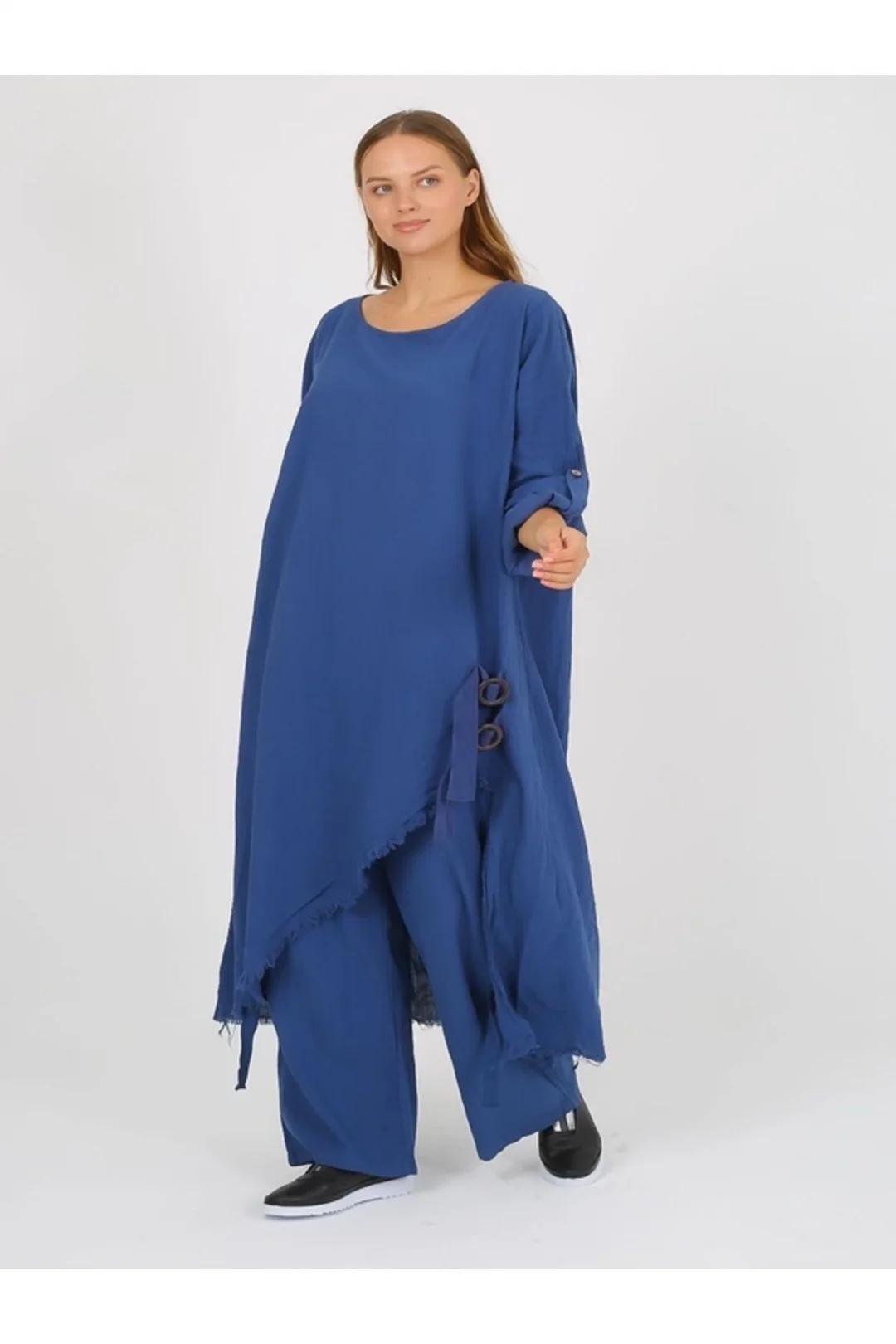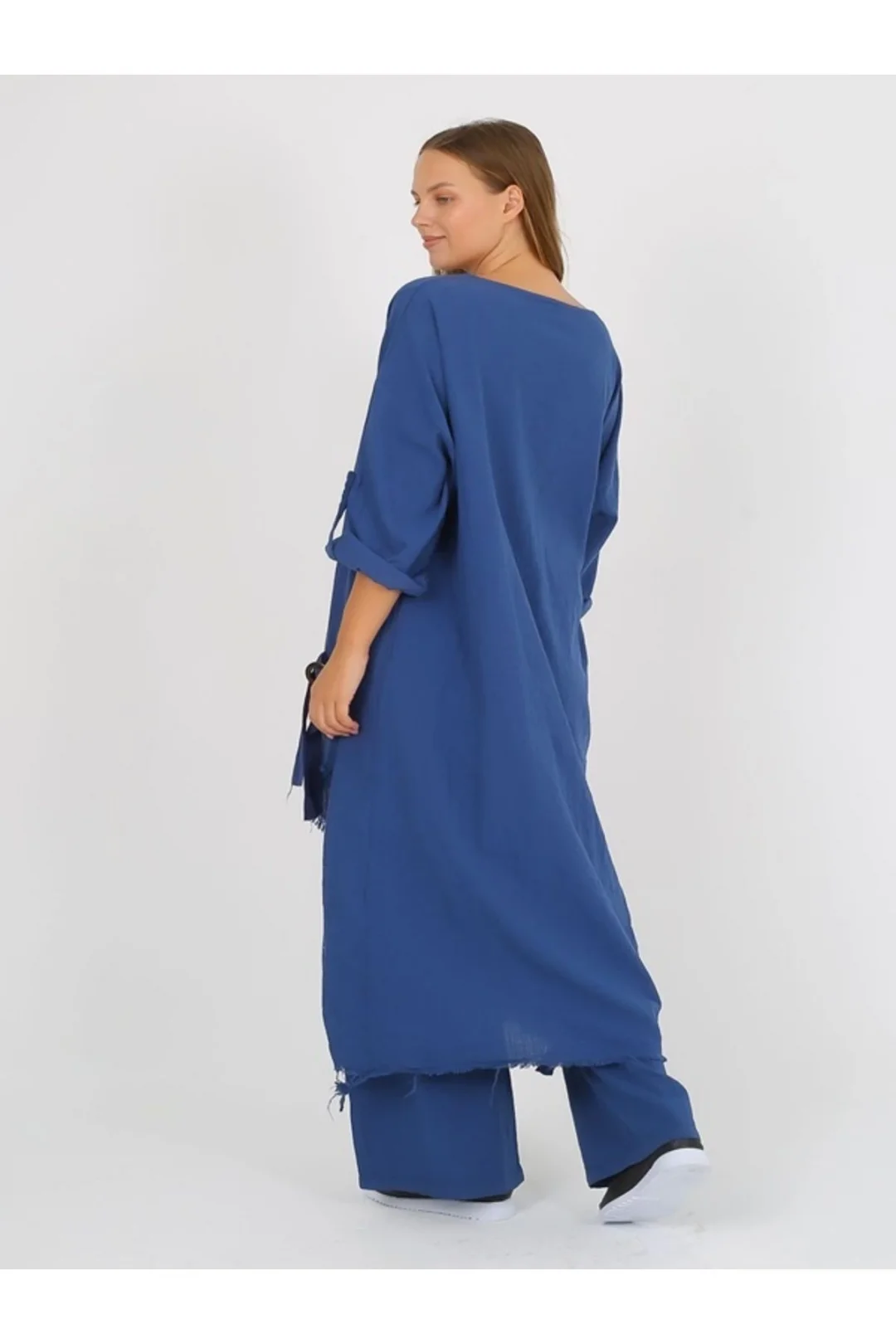 Kadın Pamuk Pantolon ve Uzun Bluz Alt Üst Takım-Mavi