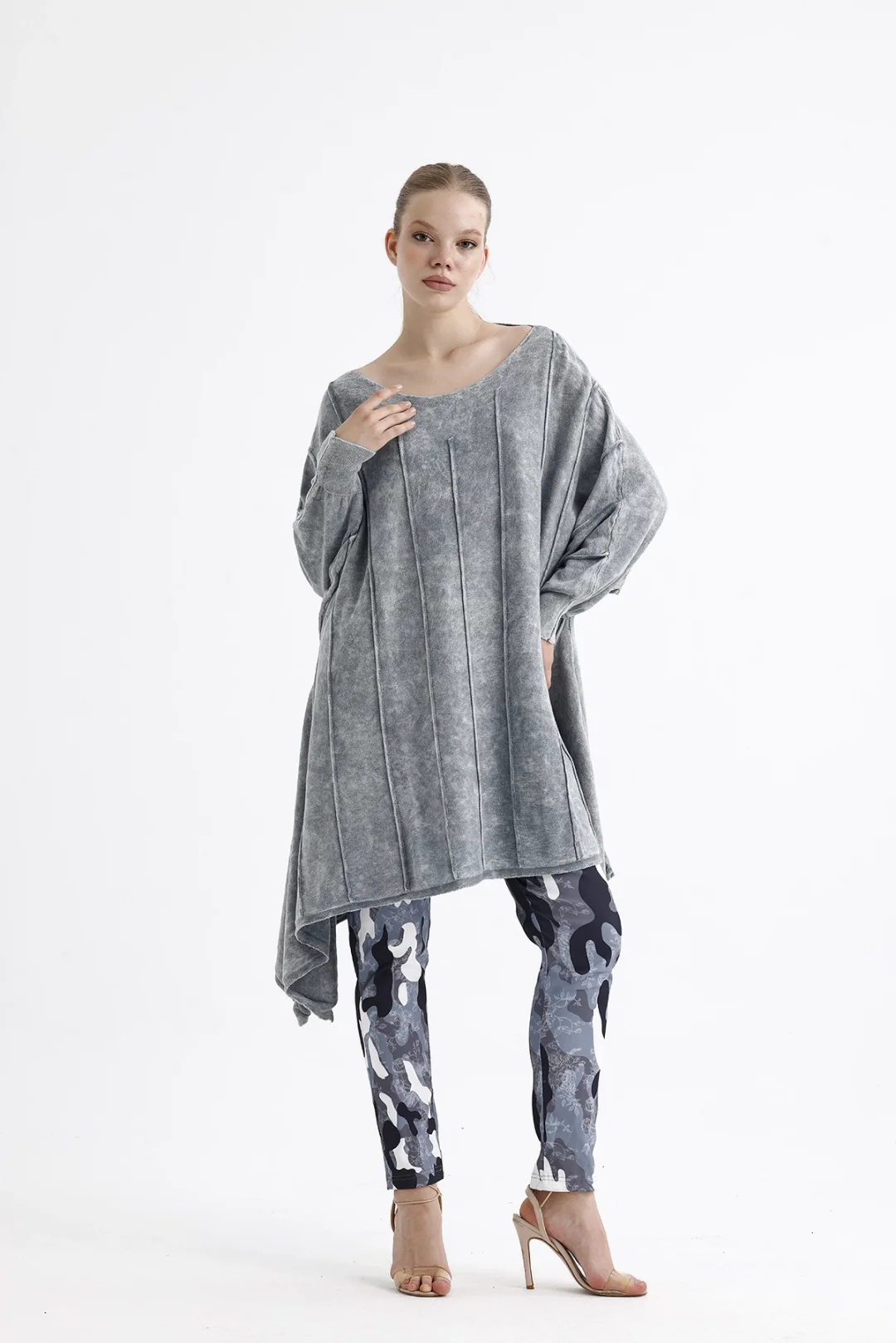 Pamuklu, şık ve rahat Asimetrik Triko Tunik ile tarzınızı konuşturun! 38-52 beden uyumludur.