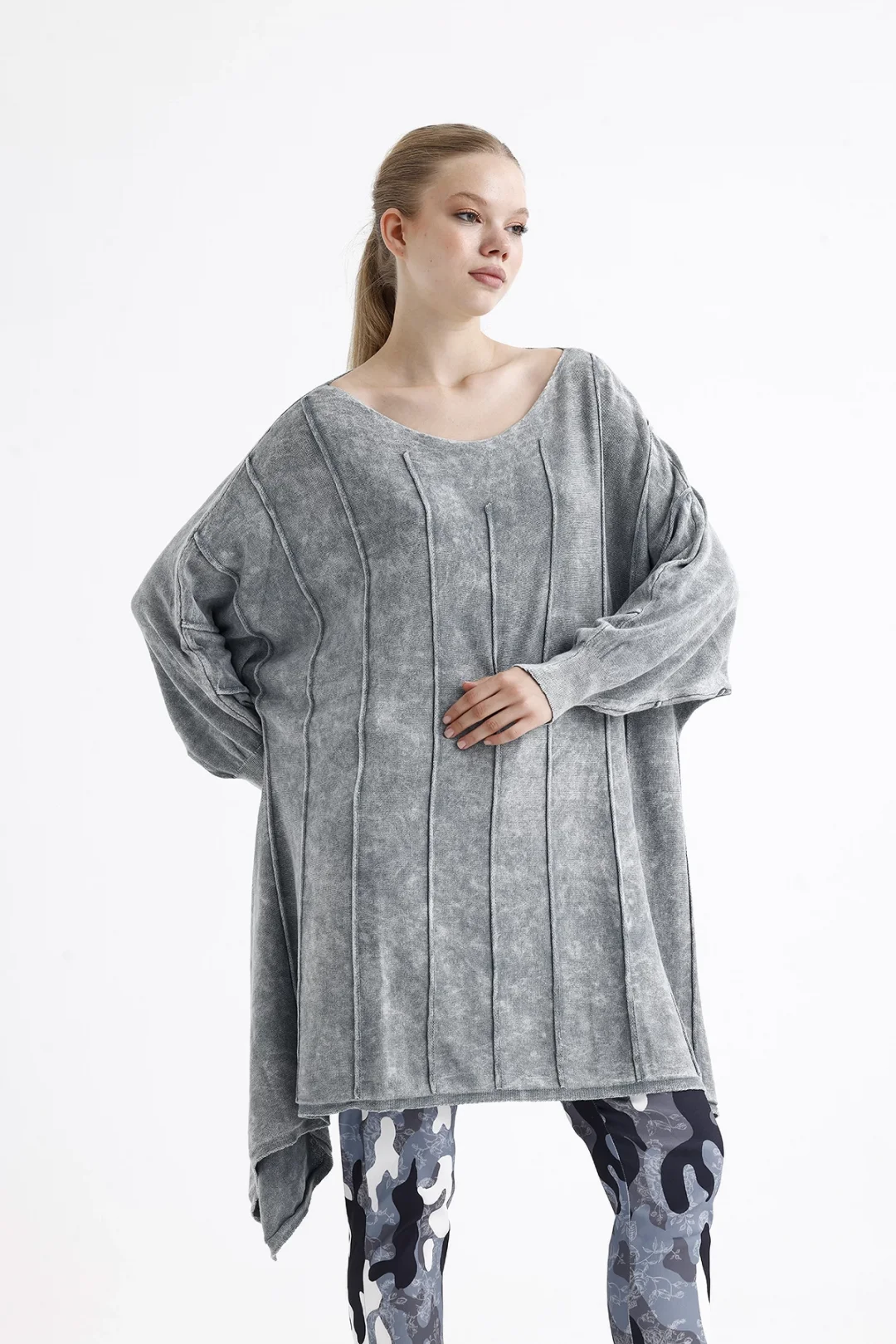 Merserize Triko Kadın Oversize Tunik - 38-52 Beden Uyumlu Standart Beden