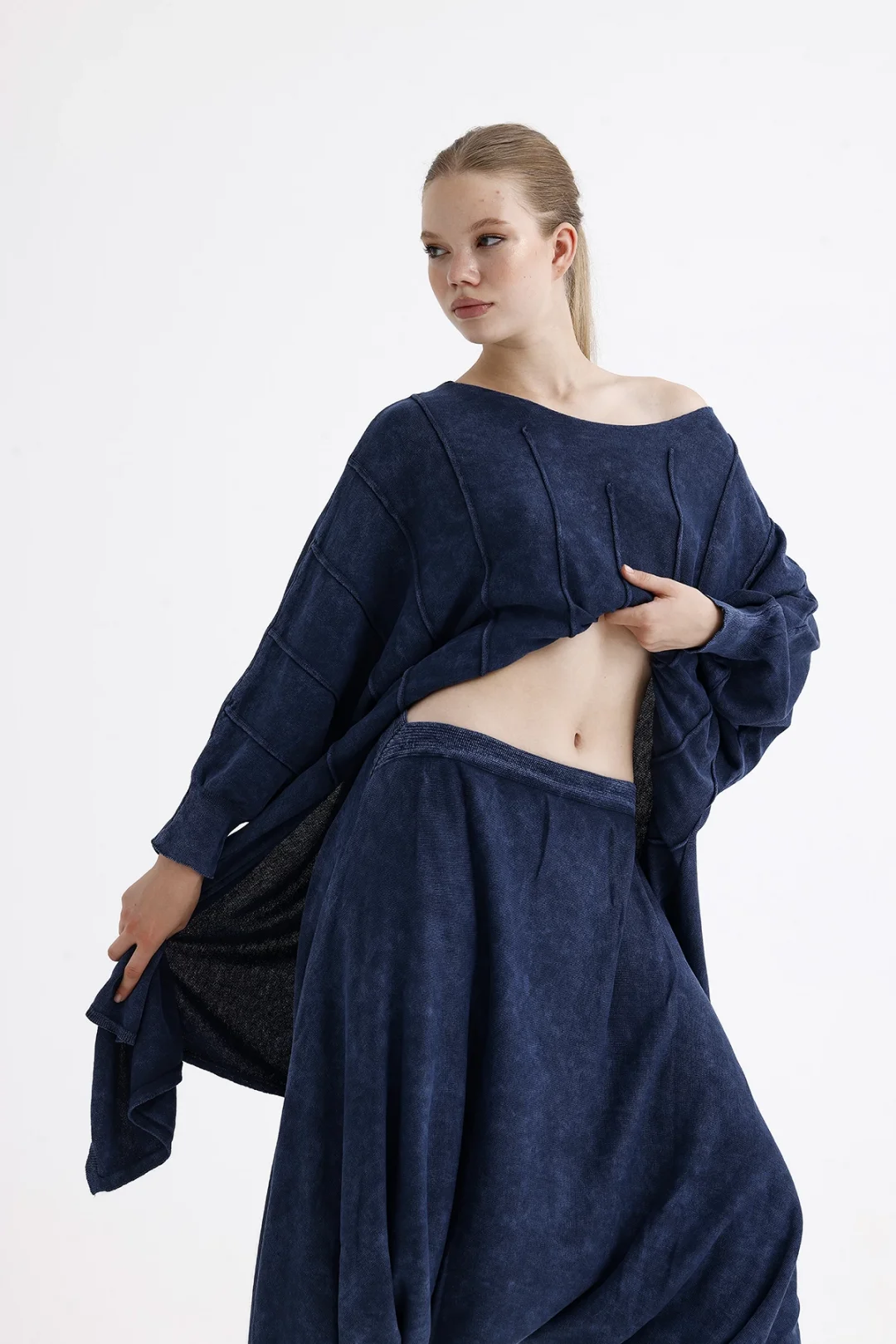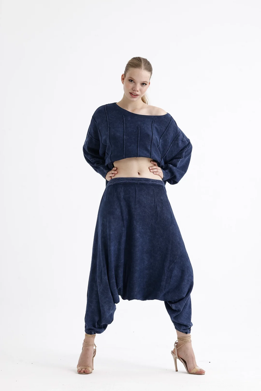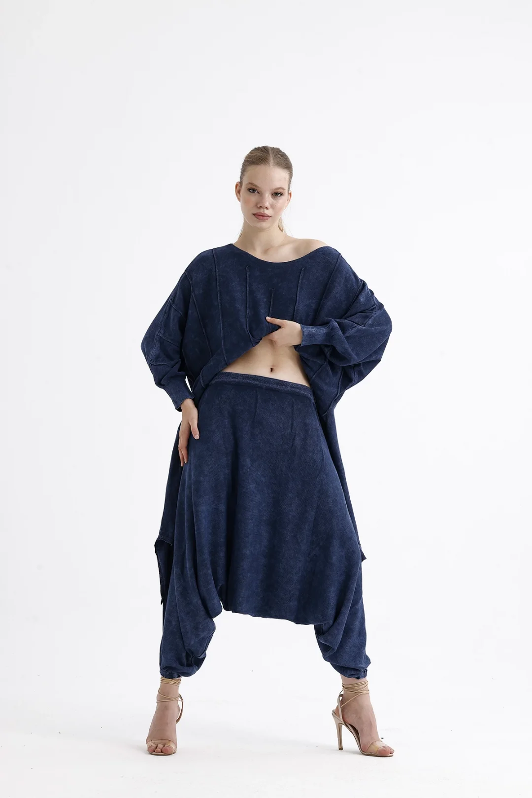 Pamuklu Triko Şalvar Pantolon-Lacivert