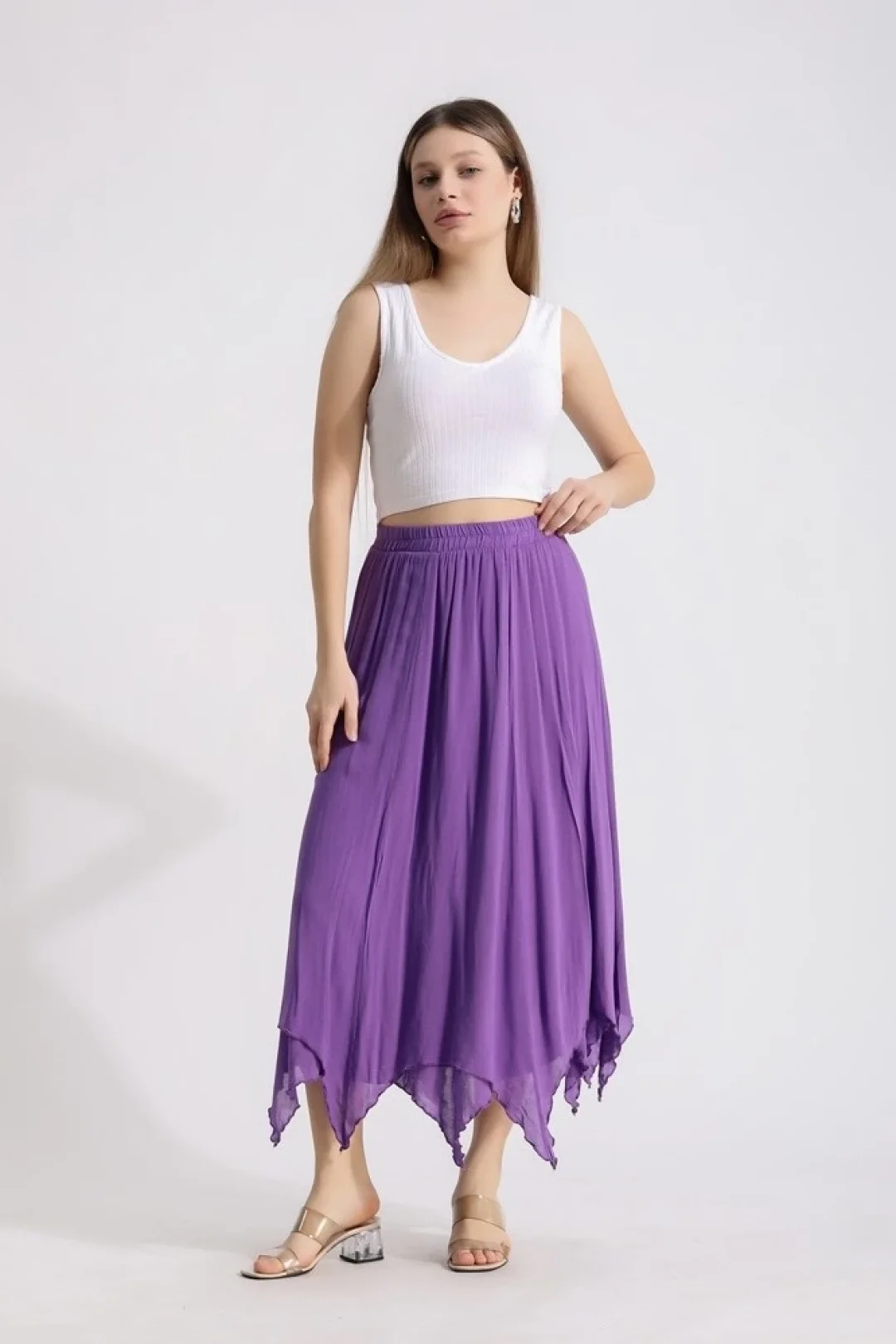 Üçgen uçlu etek-mor, günlük kombinlerinizde veya özel davetlerde şıklığınızı tamamlayacak harika bir seçenek. Sumef kalitesiyle şimdi satın alın!
