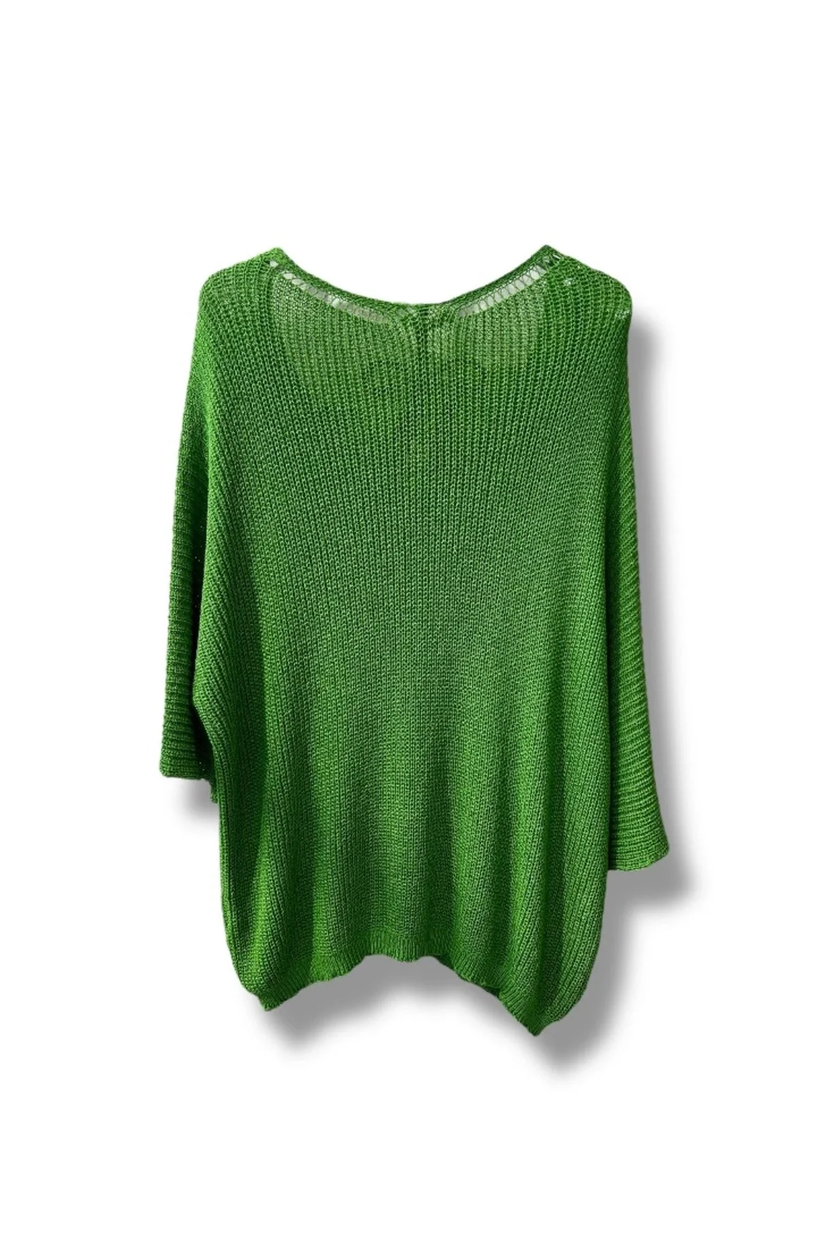Oversize Ajurlu Merserize Triko Bluz Kadın V Yaka (38-52 Beden Uyumlu)-krem