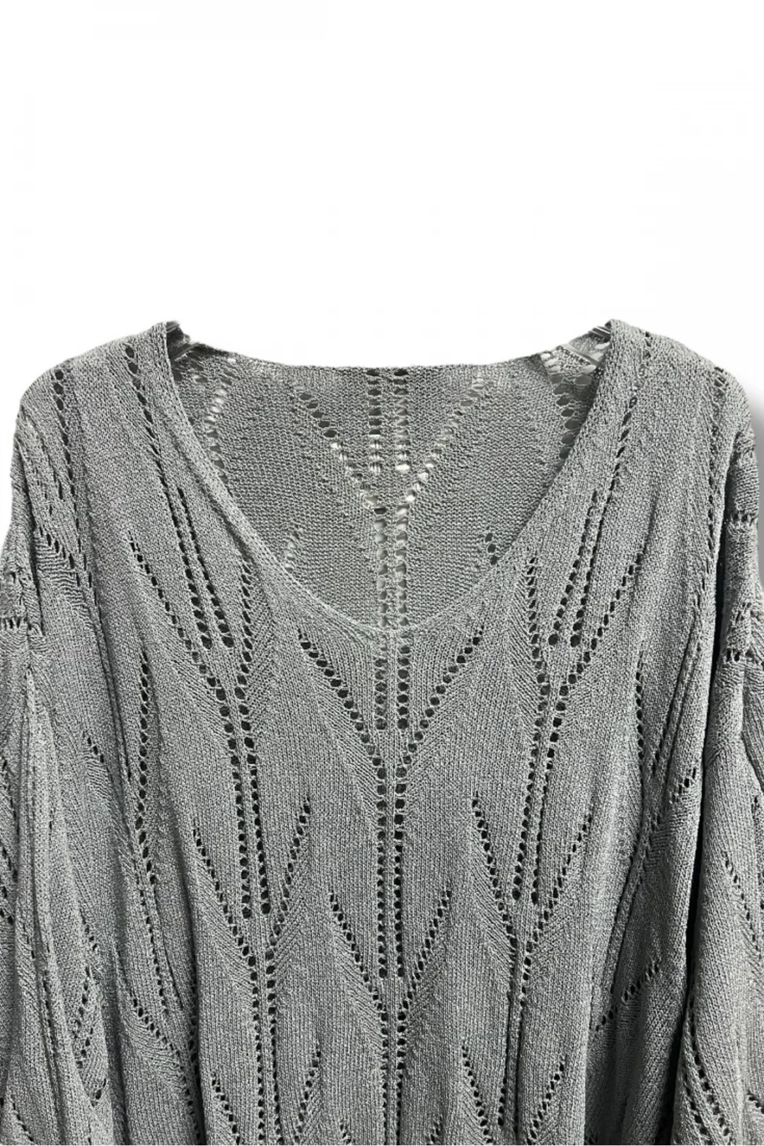 38–48 Beden Uyumlu Merserize Triko Bluz – Dokulu Desenli Gri