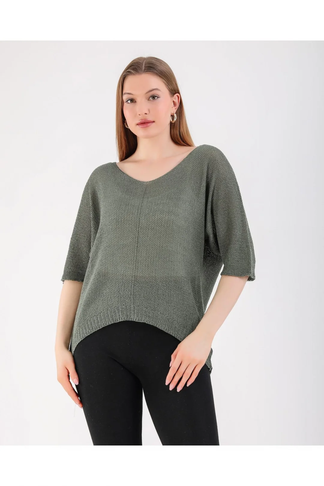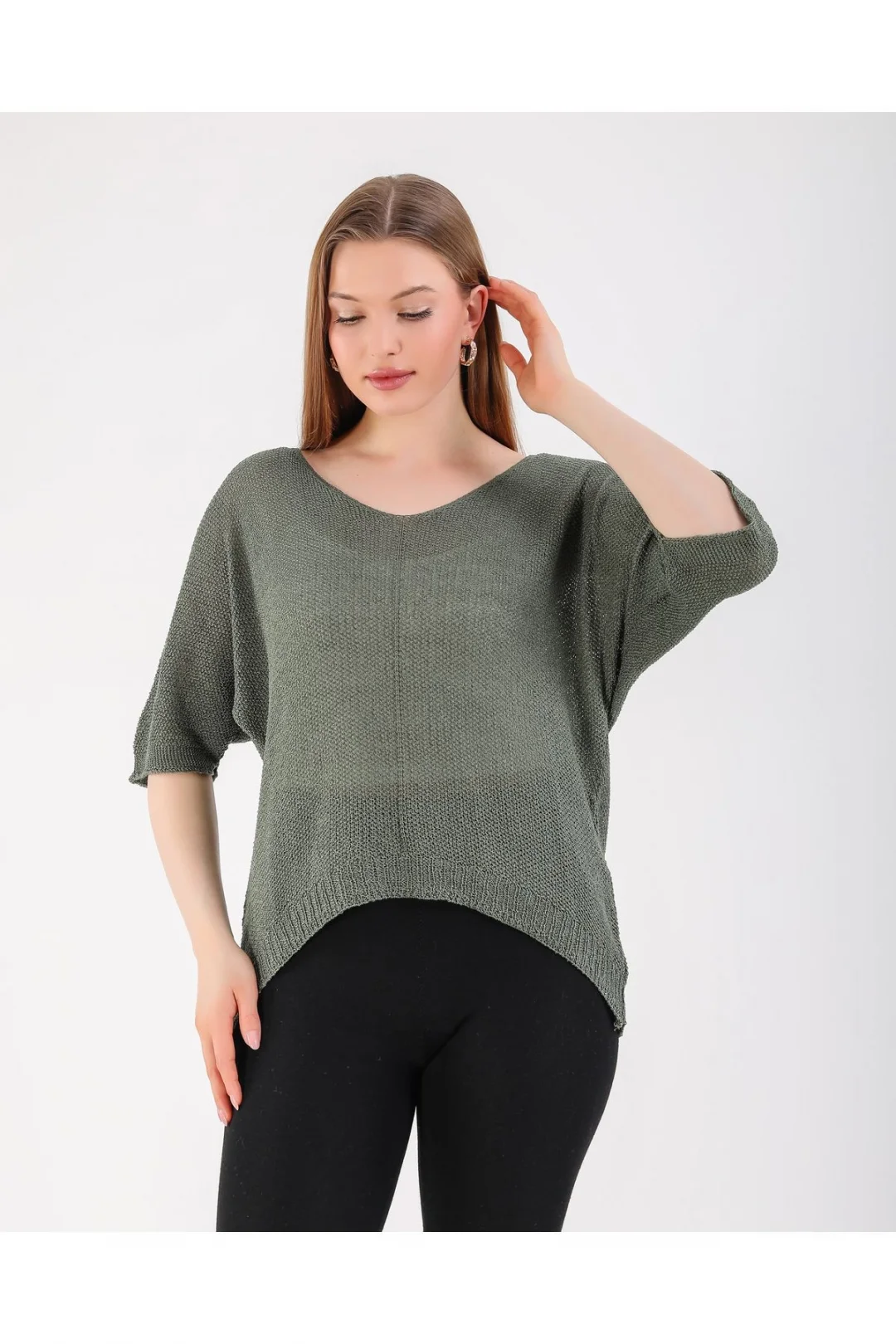 Merserize Triko Oversize Bluz - 38-52 Beden Uyumlu - Salaş Kazak